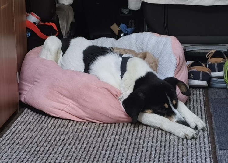 Wir aßen aber im Mobil, Wind und kleine Nieselschauer verleideten uns den Genuß im Freien.