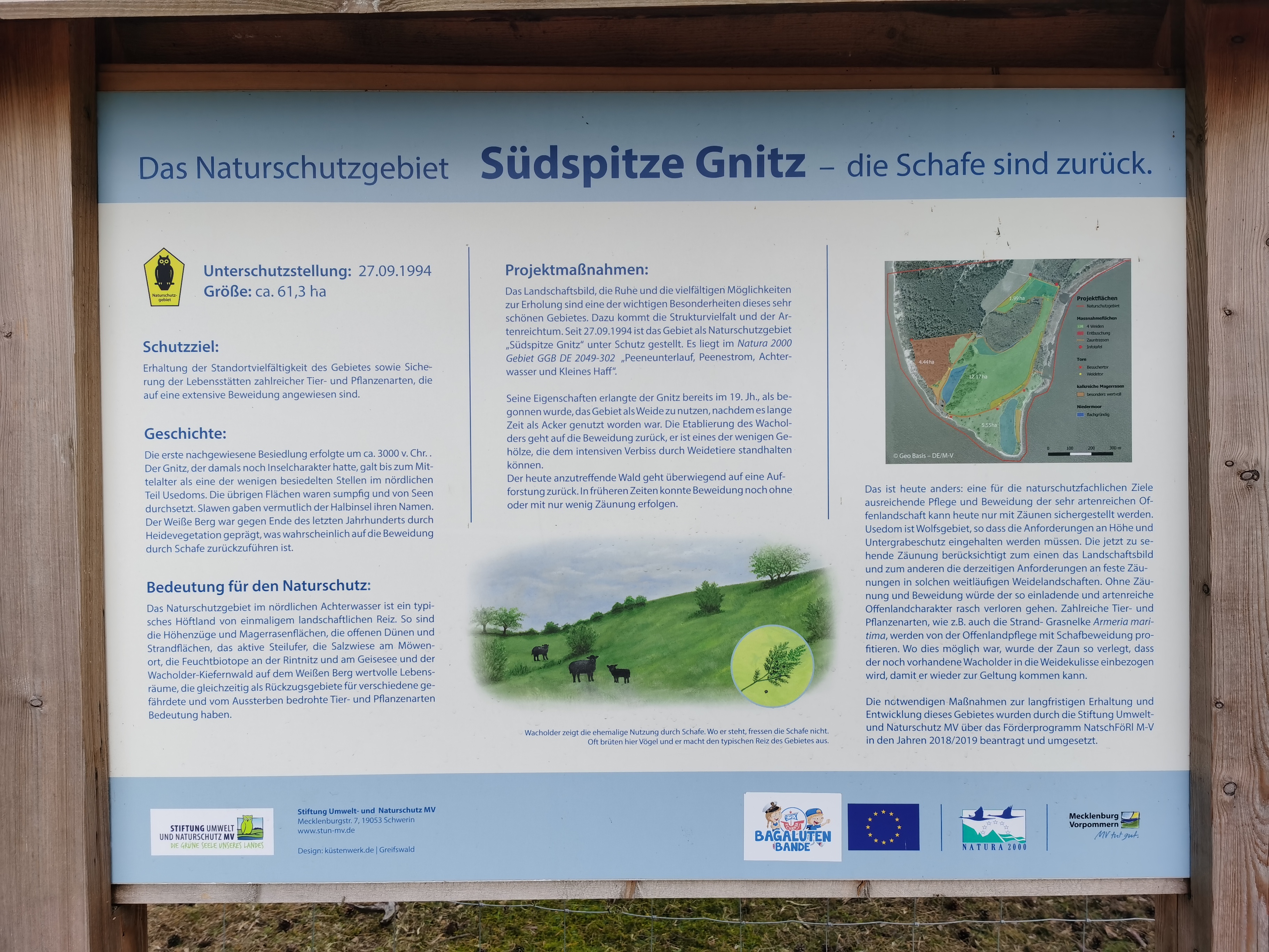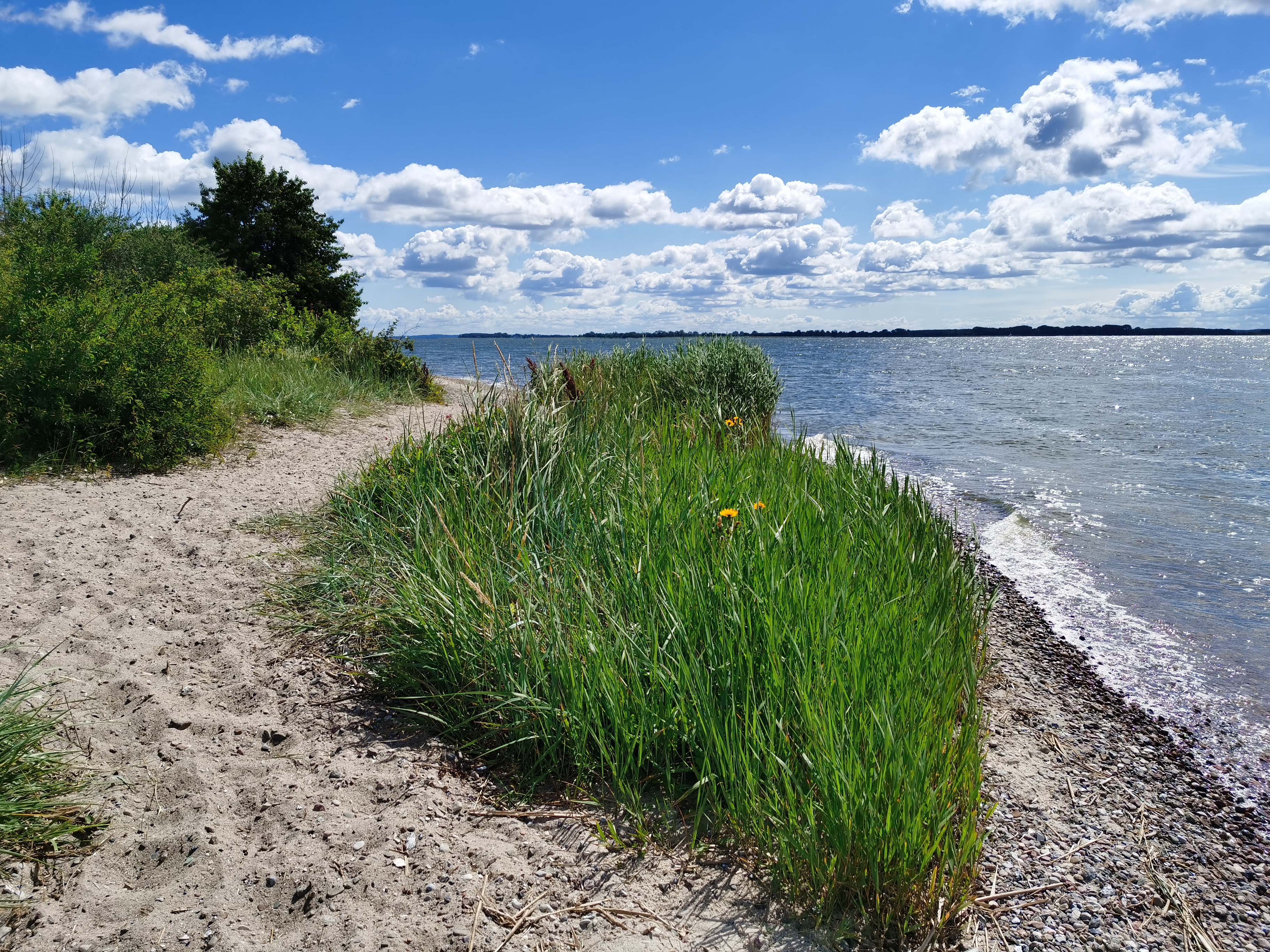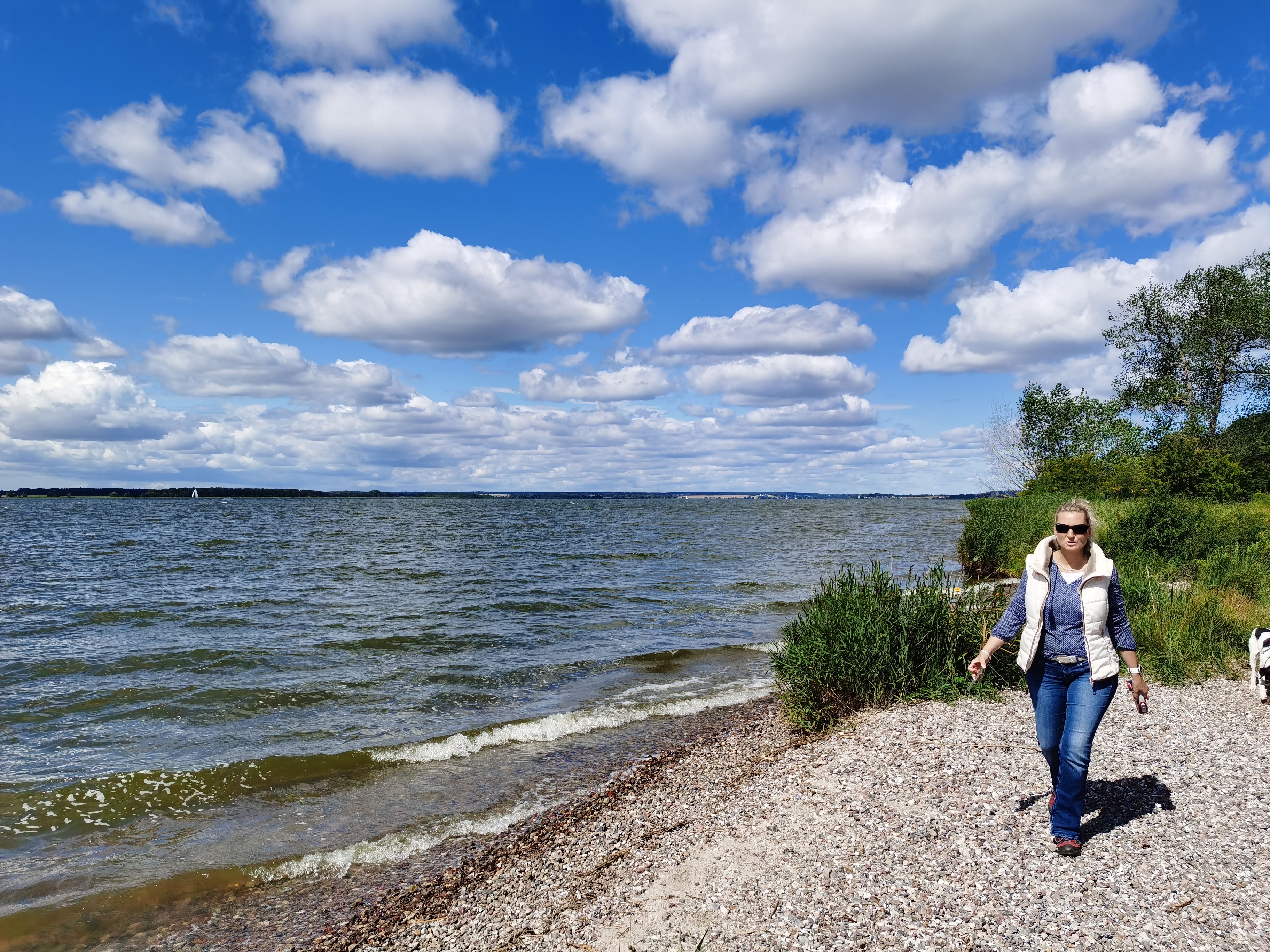 Bei bestem Wetter machten wir uns auf ins NSG Möwenort und zur Südspitze vom Gnitz. Natürlich waren wir nicht alleine, aber die Anzahl der „Mit-Wanderer“ hielt sich in Grenzen. Belohnt wurden wir mit einer tollen Aussicht von der Südspitze über das Achterwasser und einem klasse Strand, an dem wir einen Moment verweilten.