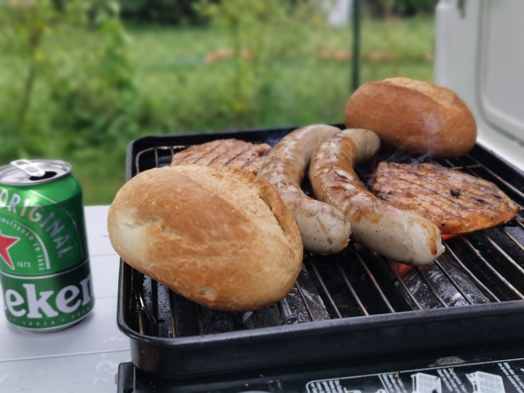 Am Reisemobil zurück angekommen, warfen wir – nach einer stärkenden Dose Bier – wieder unseren Grill an. Anschließend ging ich noch zu unseren Stellplatz-Nachbarn, um mich für den Brötchenservice mit einer Dose Heineken zu revanchieren. Kate kam nach einer halben Stunde nach und wir verbrachten noch einen netten Abend. Wir schnackten über dies und das und verabredeten, dass wir uns melden – sollten wir auf unserer anstehenden „Süd-Ost-Expedition“ in der Nähe Bambergs vorbeiziehen.