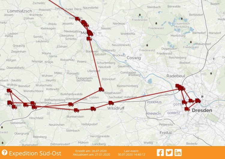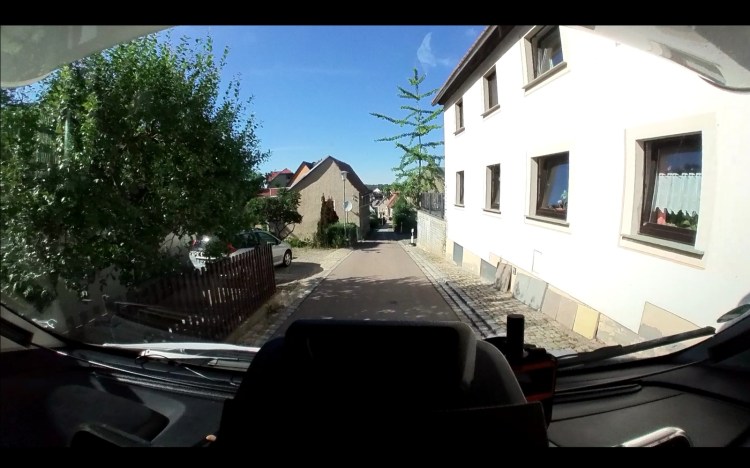 Wirklich unterschätzt hatten wir die schmalen Bundes- und Landstraßen mit tollen Steigungen (bis zu 14Prozent!!!) und Kurven, die so manchem Motorradfahrer den Puls steigen lassen. Generell auch kein wirkliches Problem, haben wir doch eigentlich Zeit… Jedoch waren zusätzlich unfassbar viele landwirtschaftliche Fahrzeuge unterwegs, dass man schon viel Geduld aufbringen musste. … Und es gab von 10 Kreuzungen nur 7 ohne Sperrung und dementsprechend immer Umleitungen… Als wir auf dem Weg durch Nossen (nachdem wir 25km Umweg erfahren hatten) auf einmal in einem Wohngebiet mit einer – sich auf 2,3m verjüngenden – Straße waren und wir nicht mehr nach vorne weiter konnten, mussten wir 800m mit 5cm Luft auf jeder Seite des Mobils rückwärts die steile Straße wieder zurück.