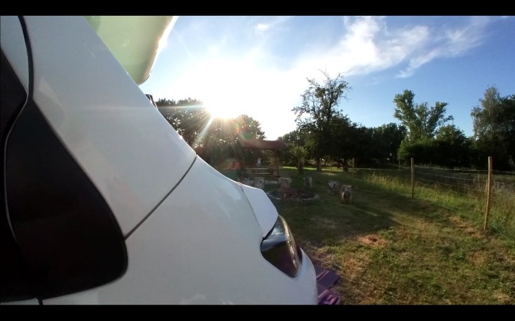 Auf dem Waldparkplatz standen wir zwar schräg – beim Freistehen fahren wir nicht auf unsere Flatjacks, um im Falle der Fälle schnell und ohne Umschweife losfahren zu können – aber super ruhig.