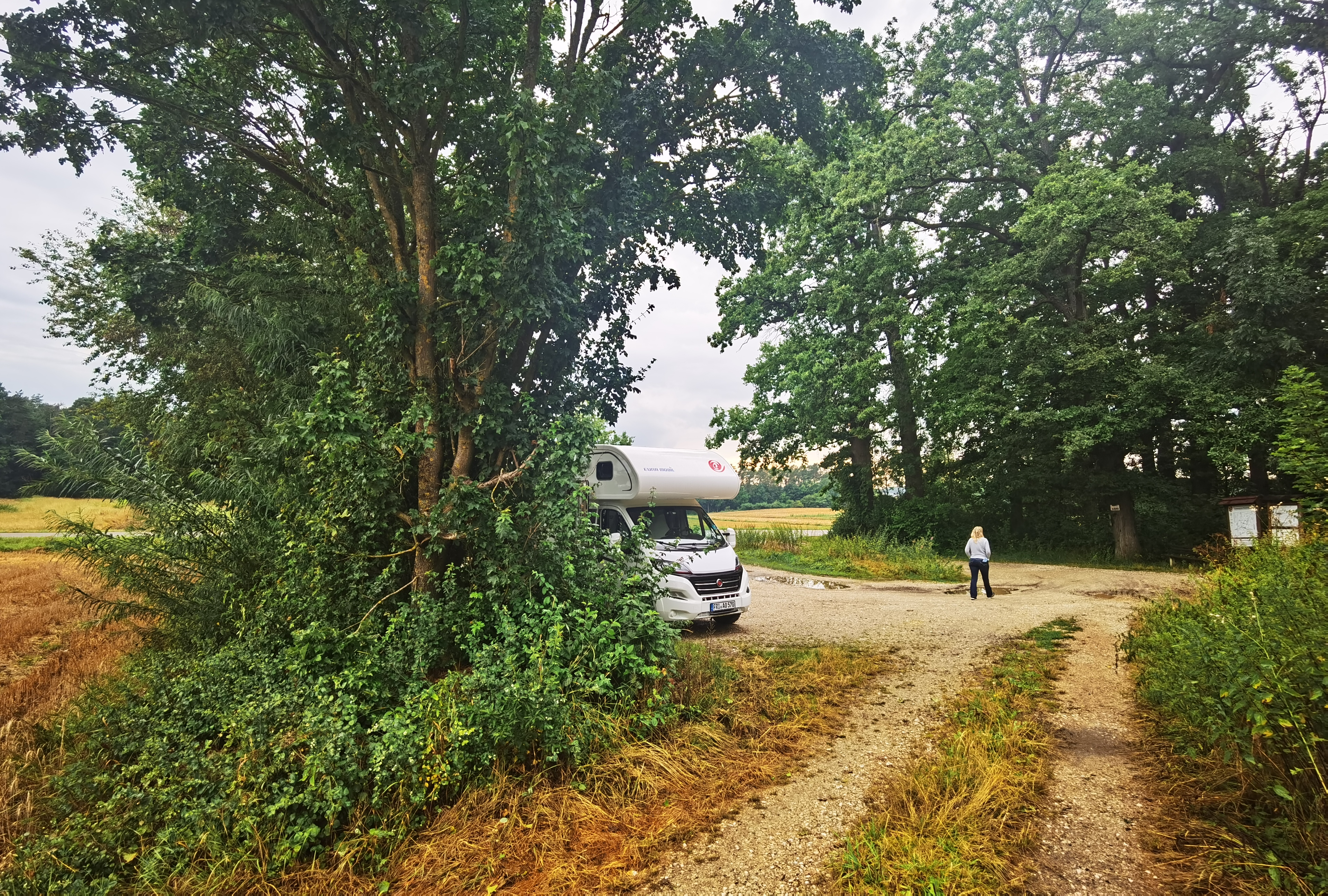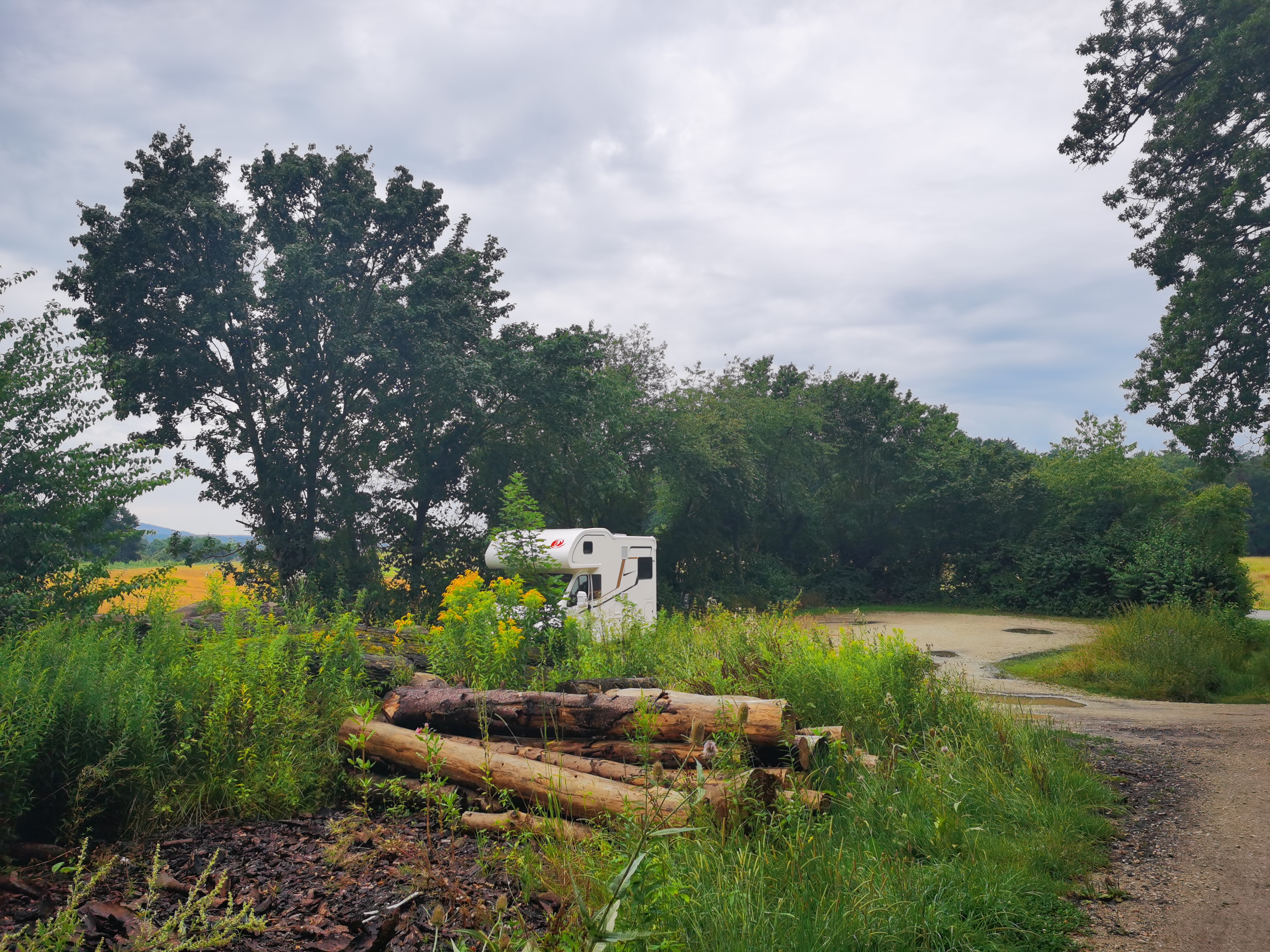 Für den Abend hatten wir uns wieder einen abgelegenen Waldparkplatz am Startpunkt für den „Archäologischen Wanderweg“ in Speikern ausgesucht. Als wir ankamen, standen noch 2 Autos von Hundebesitzern dort.