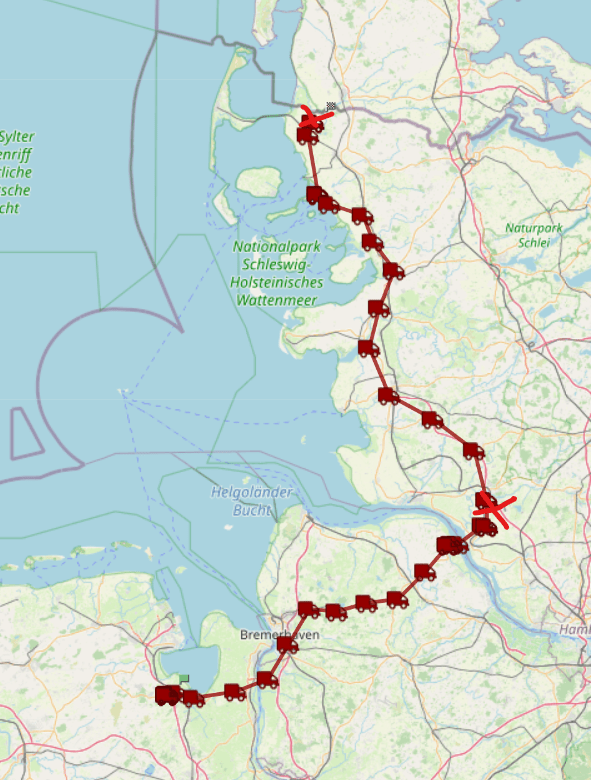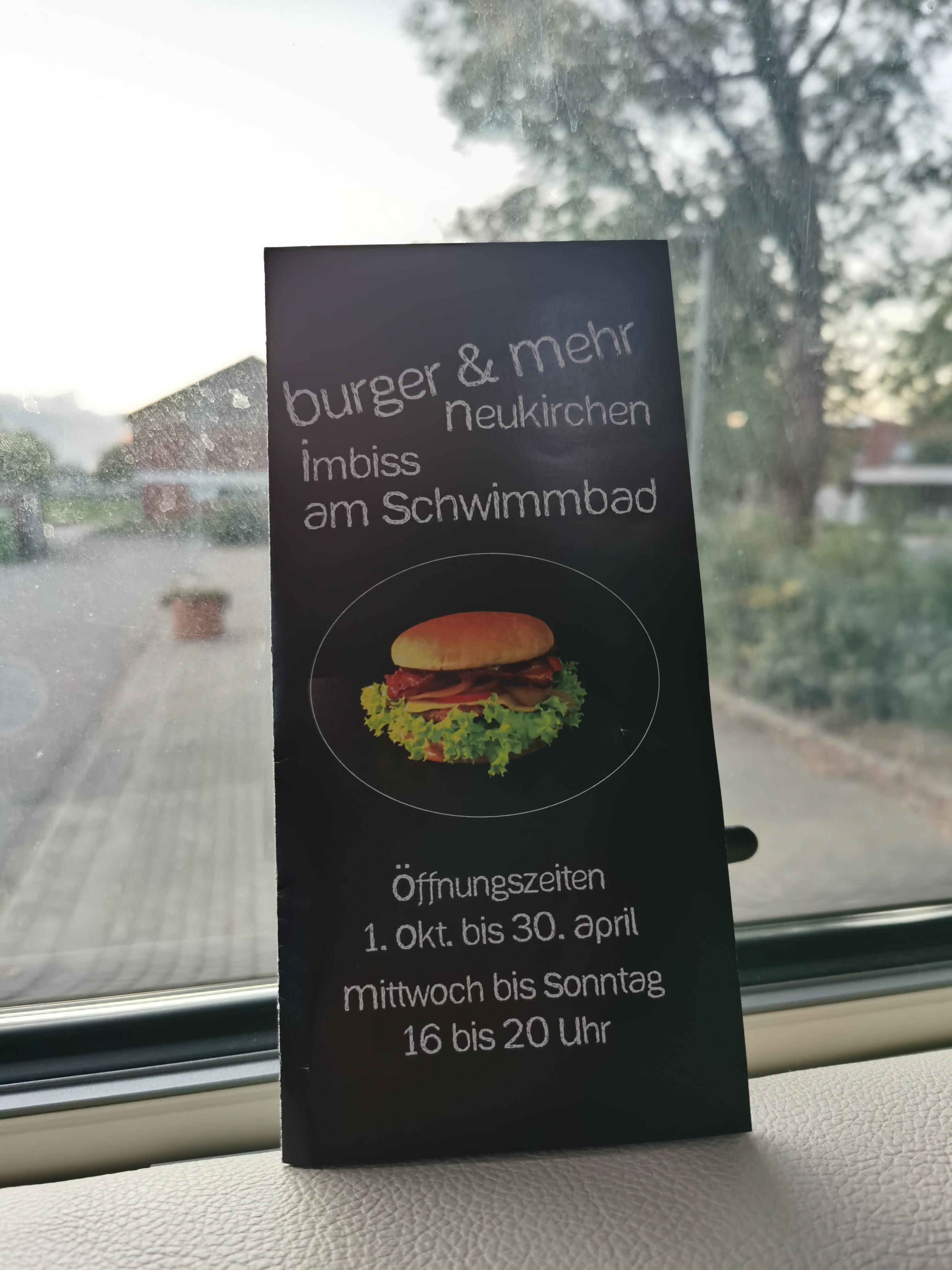 So hatten wir den Sprung über die Elbe schon geschafft – heute morgen konnten wir also alles ruhiger angehen lassen und bummelten über die Bundes und Landstraßen – mal mehr mal weniger nah der Küste – in Richtung der Dänischen Grenze. Gegen Mittag legten wir einen Sightseeing-Stop in Schlüttsiel (der Fährhafen zu den Halligen) ein und errichten unser Nachtlager in Neukirchen (dänisch Nykirke, friesisch: Naischöspel). In diesem ländlichen Zentralort des Kreises Nordfriesland in Schleswig-Holstein. lebte einst der Maler Emil Nolde und ist heutiger Sitz des vermutlichen besten Burgergrills 2km vor Dänemark. Der Nachmittag war entgegen aller Vorhersagen und der Gewissheit im „Off“, also 2km vor der Dänischen Grenze in Nordfriesland zu stehen, ganz wunderbar. Die Sonne schien und unser kleiner Nachmittagsgang wurde um 16 Uhr mit feinsten Schlemmereien vom BurgerGrill abgerunden!