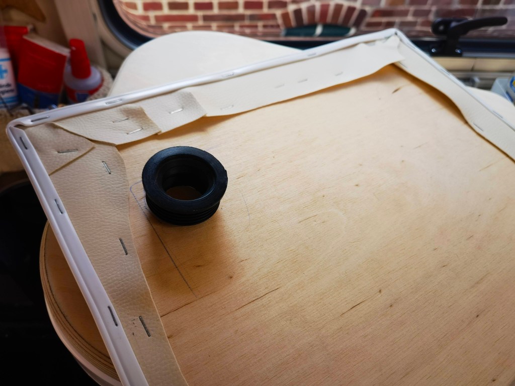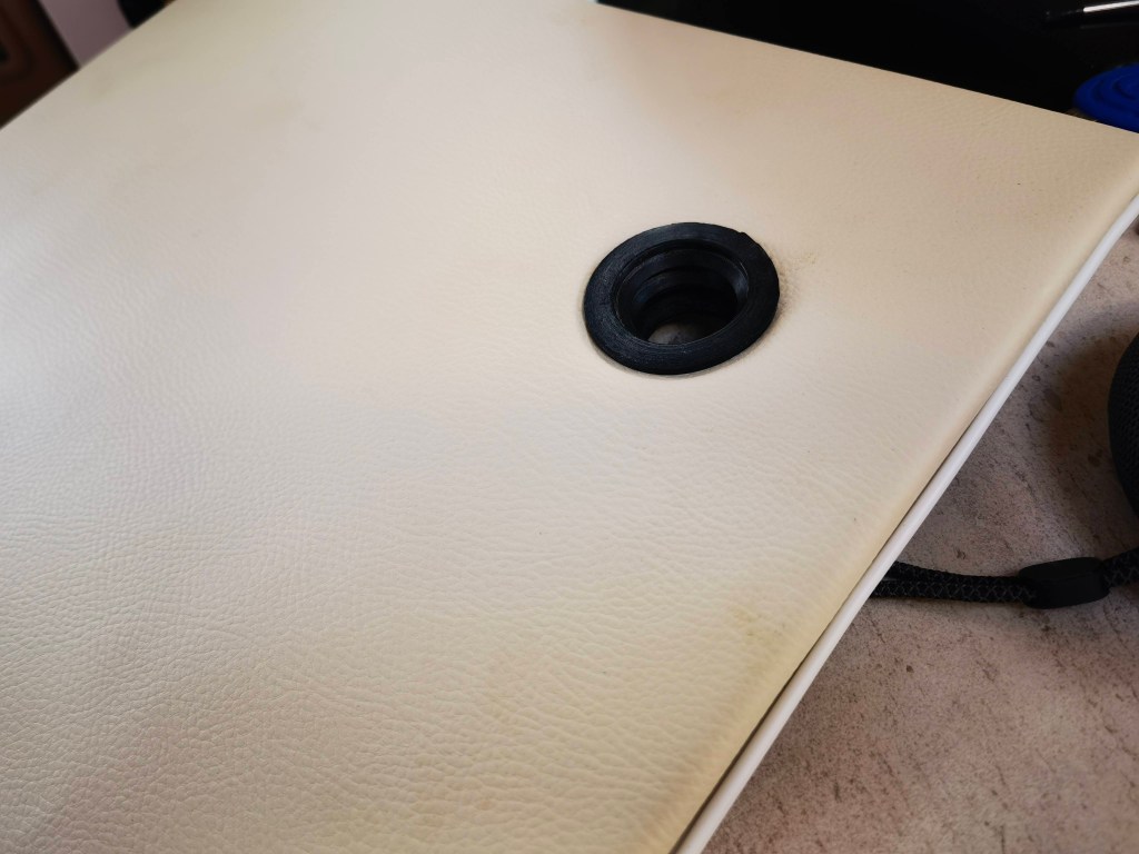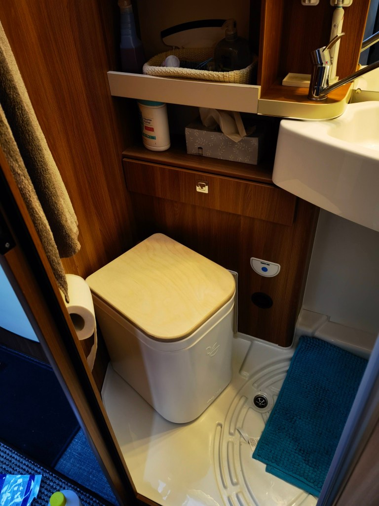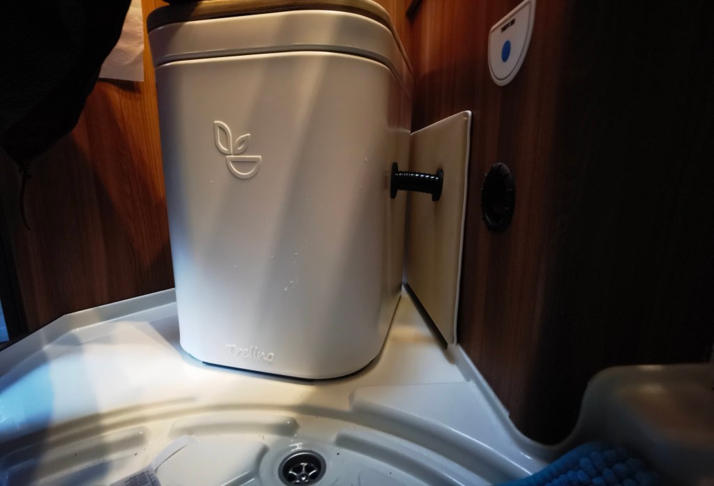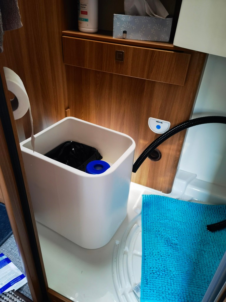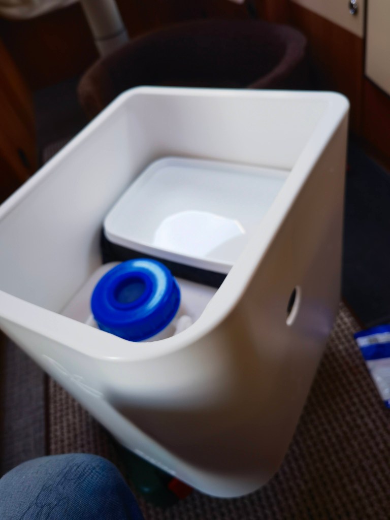 Bilder sagen mehr als Worte, also hier eine kleine „Diashow“ des Umbaus. Die Toilette hatte ich Anfang Januar „auf blauen Dunst“ bestellt, sie war bis dato nur ein gerendertes Bild und es gab keine echten Bilder. Allerdings war von vornherein klar, dass diese Toilette die Einzige sein würde, die wir nehmen konnten, da sie die maximalen Abmessungen nicht überschreiten würde. Es dauerte tatsächlich 11 Wochen, bis das Paket ankam und ich die neue Toilette einbauen konnte. Der Ausbau der Thetford Kassettentoilette war schnell und sauber gemacht (ca. 30 Minuten). Die überflüssige Abzweigung der Spülwasserleitung verschloss ich mit einem Blindstopfen und das original Panel mit dem Spültaster erweiterte ich um den Knopf für die Lüftung. Weiter bekam die Öffnung / Klappe in der Außenwand noch eine Bohrung für den Lüfter und das SOG-Filtergehäuse.