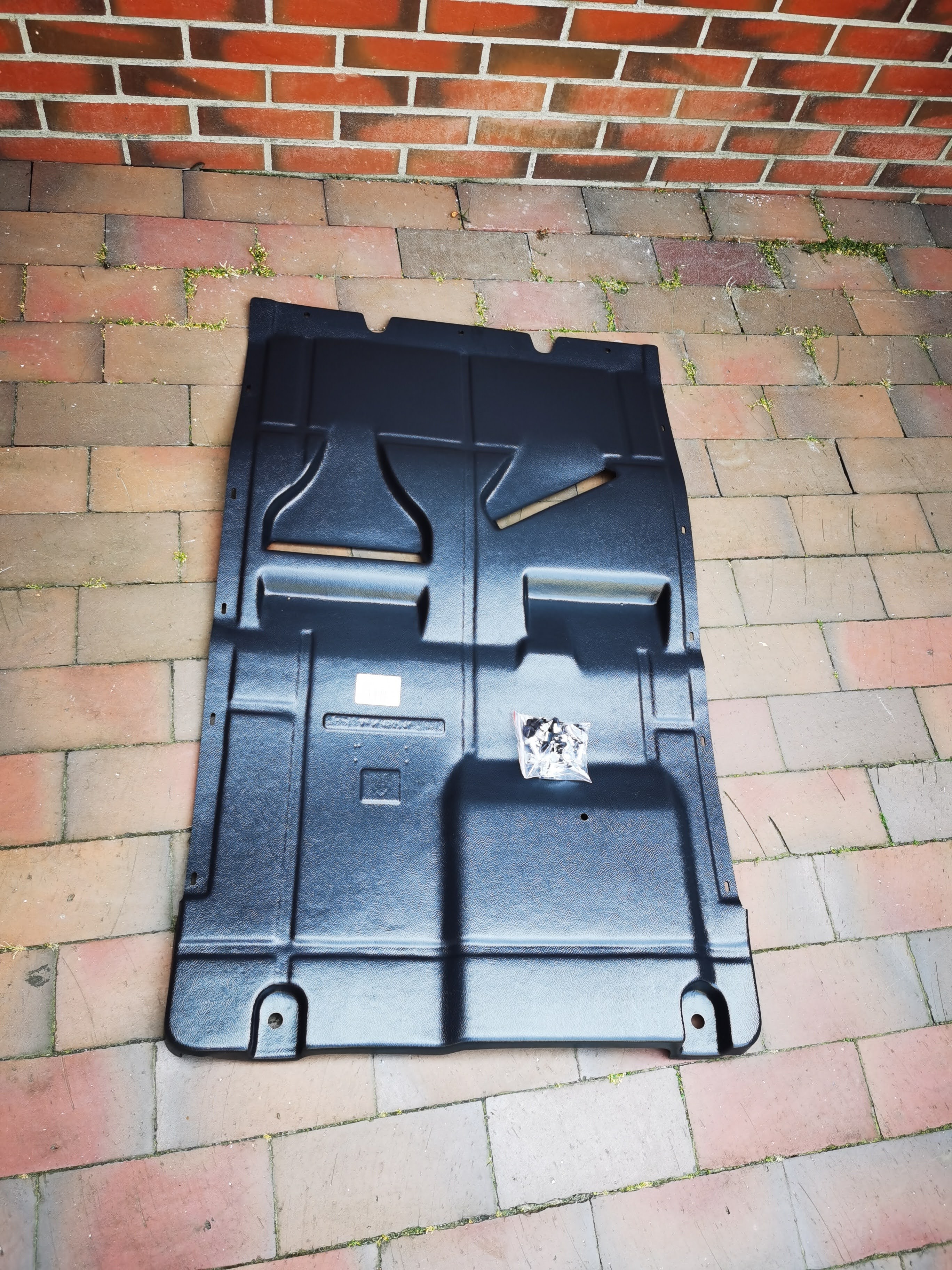Nein, wusste ich nicht. Ein Blick unter unser Mobil verriet jedoch, dass das Ding bei uns tatsächlich fehlte. Nach kurzer Recherche bestellte ich das Mittelteil bei einem Online-Auktionshaus und freute mich ein paar Tage später über das große Paket aus Polen. Für knapp 40€ bekam ich das ca. 1.5qm große Plastikteil, welches zumindest Dreck und Ähnliches vom Motor unten abhalten sollte. Ein echter Unterfahrschutz ist das natürlich nicht, dann müsste es aus Stahl oder Aluminiumblech sein und kostet dann min. 300€. Ich entschied mich allerdings aus Gewichtsgründen für die Plastikvariante.