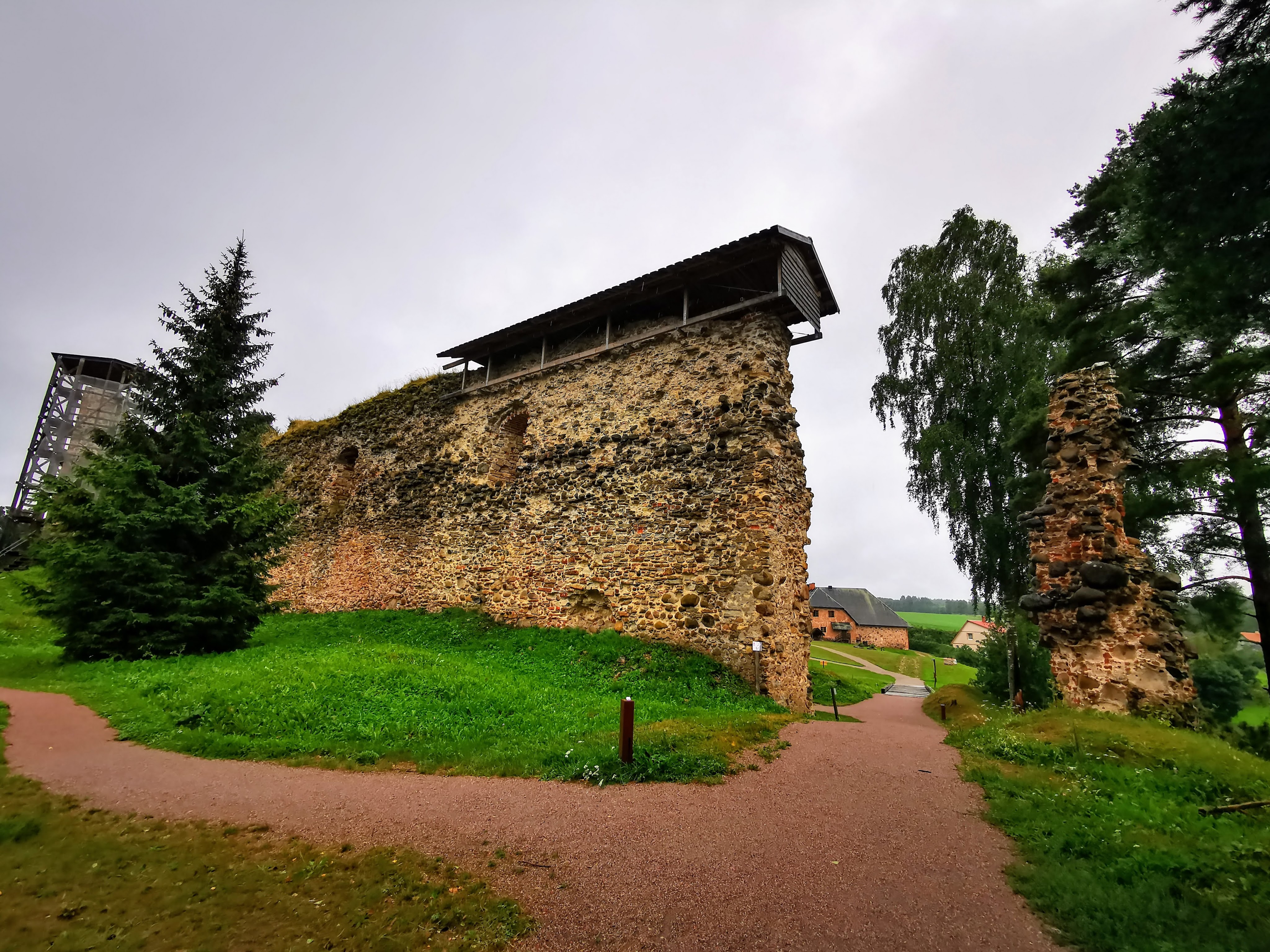 Also, unsere Nacht war in der Tat nicht ganz so ruhig, obwohl wir abseits standen. Allerdings war der Platz gut mit dem Auto erreichbar und es feierten in der 100m entfernten Grillhütte ein paar Jugendliche bis 2 Uhr. Eigentlich nicht schlimm, weil es auch nicht wirklich laut war. Aber ich schlafe dann doch nur mit einem geschlossenem Auge, weil man einfach nie weiß, wie sich die Situation entwickelt…Es entwickelte sich nichts und wir schliefen dann heute im Verhältnis – sehr lange. Wir duschten und frühstückten spät und waren somit erst um 11 Uhr bereit zu Abfahrt. Das machte aber auch nichts, da es sowieso regnete und dies auch den ganzen Tag so bleiben sollte. Wir hatten uns vorgenommen weitere 250km gen Norden nach Tartu zu fahren und diese Strecke etwa in der Hälfte zu teilen, um an der Burg Neuhausen / Vastseliina (EST) eine Mittagspause einzulegen.