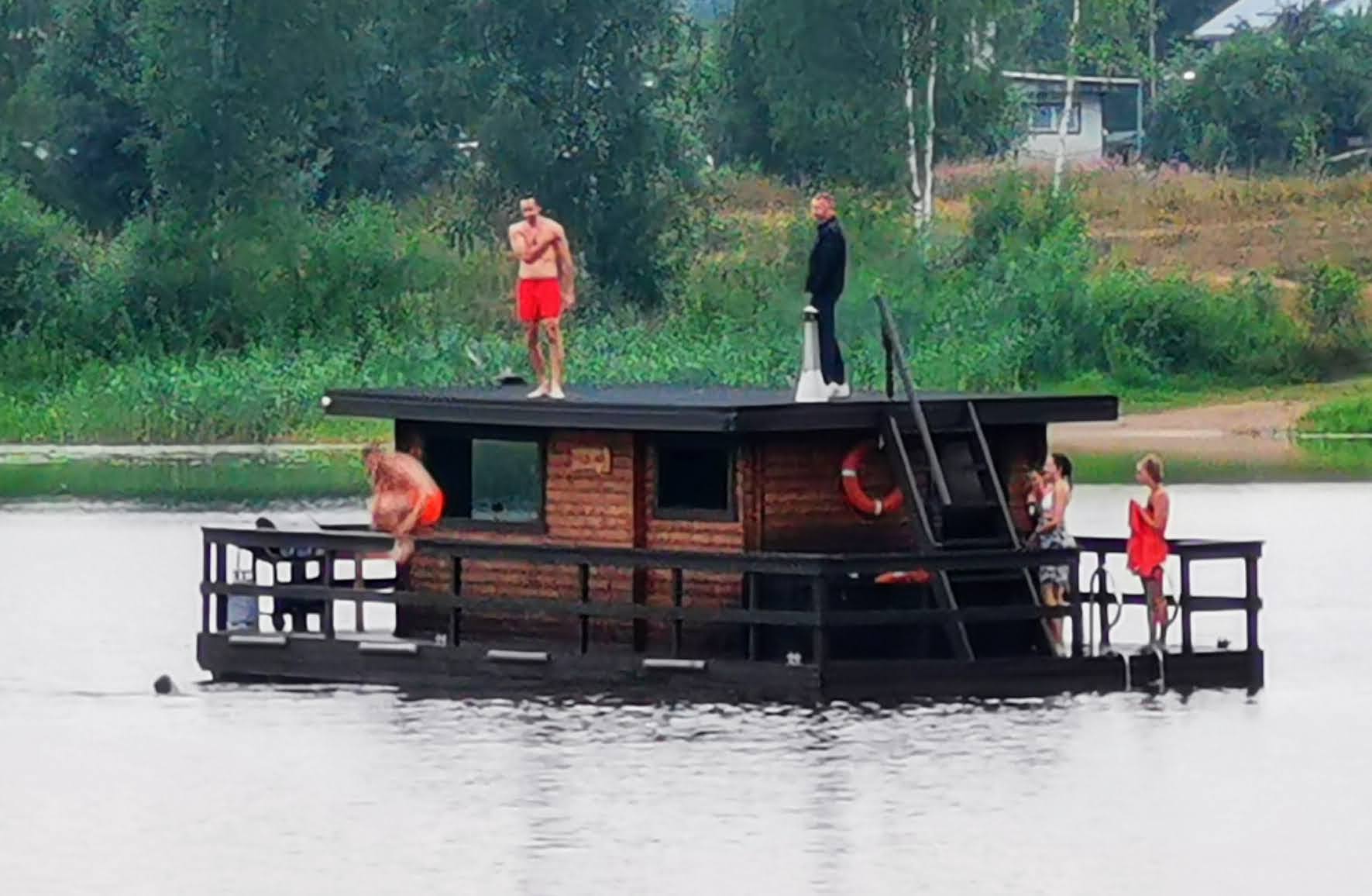Auch ein „Saunaboot“ kam in die Kulisse gefahren und die „Saunagänger“ nutzen das Dach des Bootes als Sprungturm…