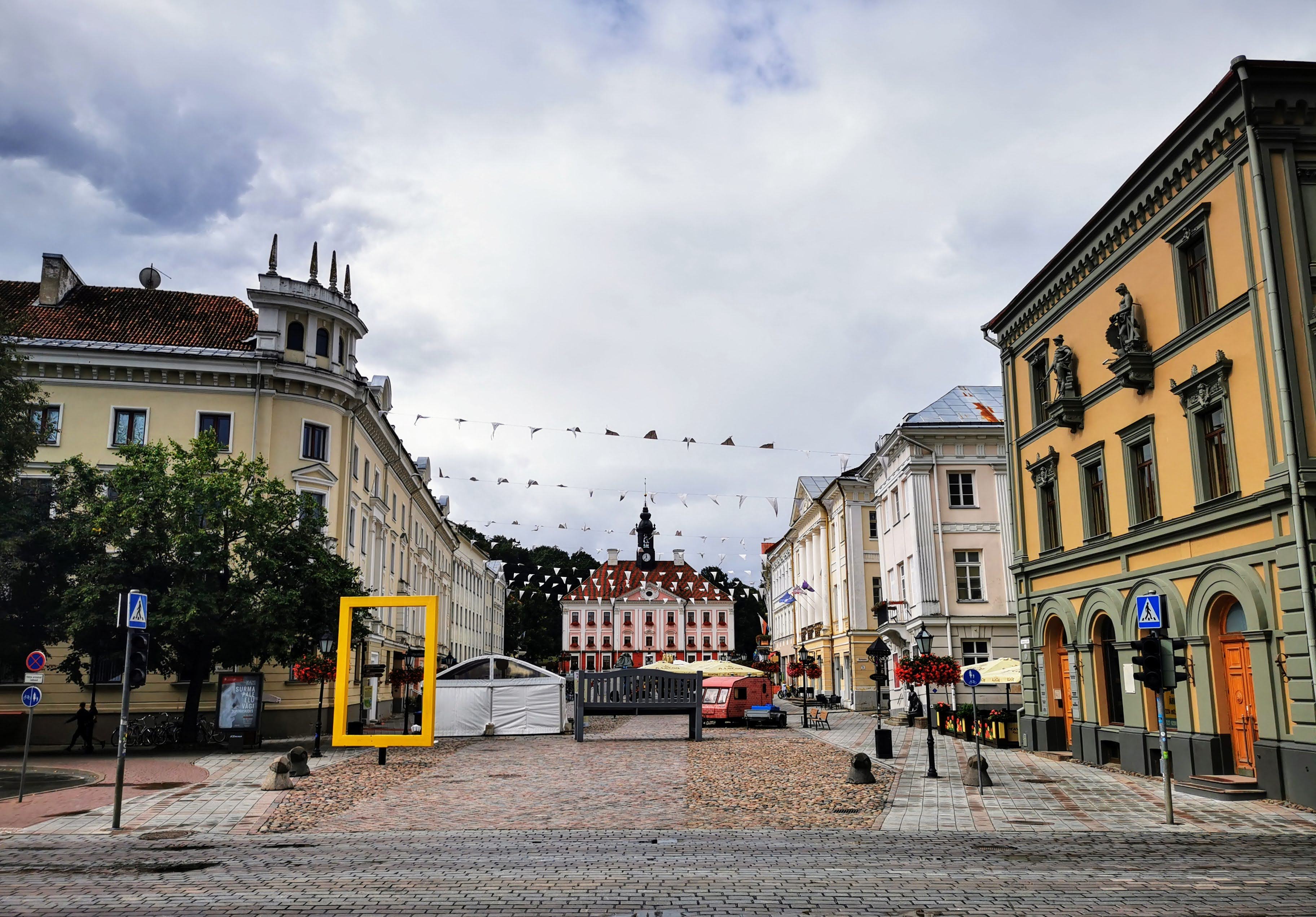 Nach dem Einkauf holten wir schnell die Wäsche aus dem Salon, und kehrten zum Mobil zurück. Auf einen Schlag war unsere Null € für Stellplätze-Taktik gegessen, denn wir hatten einen 30€ Strafzettel an der Scheibe. Ich hatte gedacht, dass die ersten 90Minuten kostenlos sind – das stimmte zwar, aber dazu hätte man am Automaten sein KFZ-Kennzeichen eingeben müssen und hätte ein 1.5h Stunden gültiges, kostenloses Ticket ziehen müssen. Super. Also schnell direkt via Online-pay bezahlt und ab in die Altstadt.Die Altstadt Tartus – der zweitgrößten Stadt Estlands (sie ist trotzdem sehr klein) – ist sehr schön und stark auf Kultur ausgerichtet (Tartu hat sich als Kulturhauptstadt 2024 beworben).