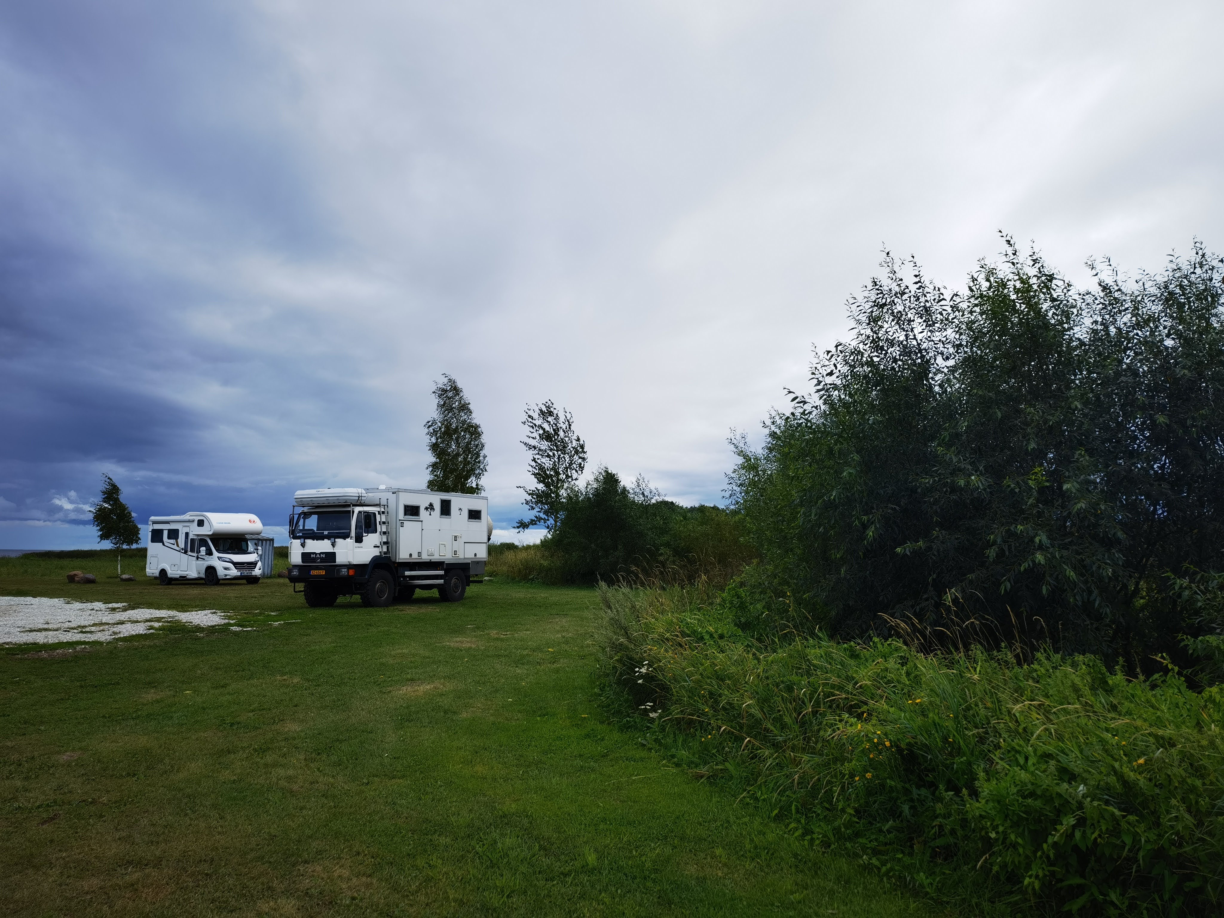 Vorher machten wir bei einer CIRCLE K Tankstelle die komplette Ver-/Entsorgung. Super, hier in Estland gibt es sie wieder (wie in Schweden…), die Komfort-Tankstellen für den autarken Reisemobilisten. Tanken, ne Cola light holen, Abwasser in die Rinne und Frischwasser zapfen…Alles in einem „Abwasch“…