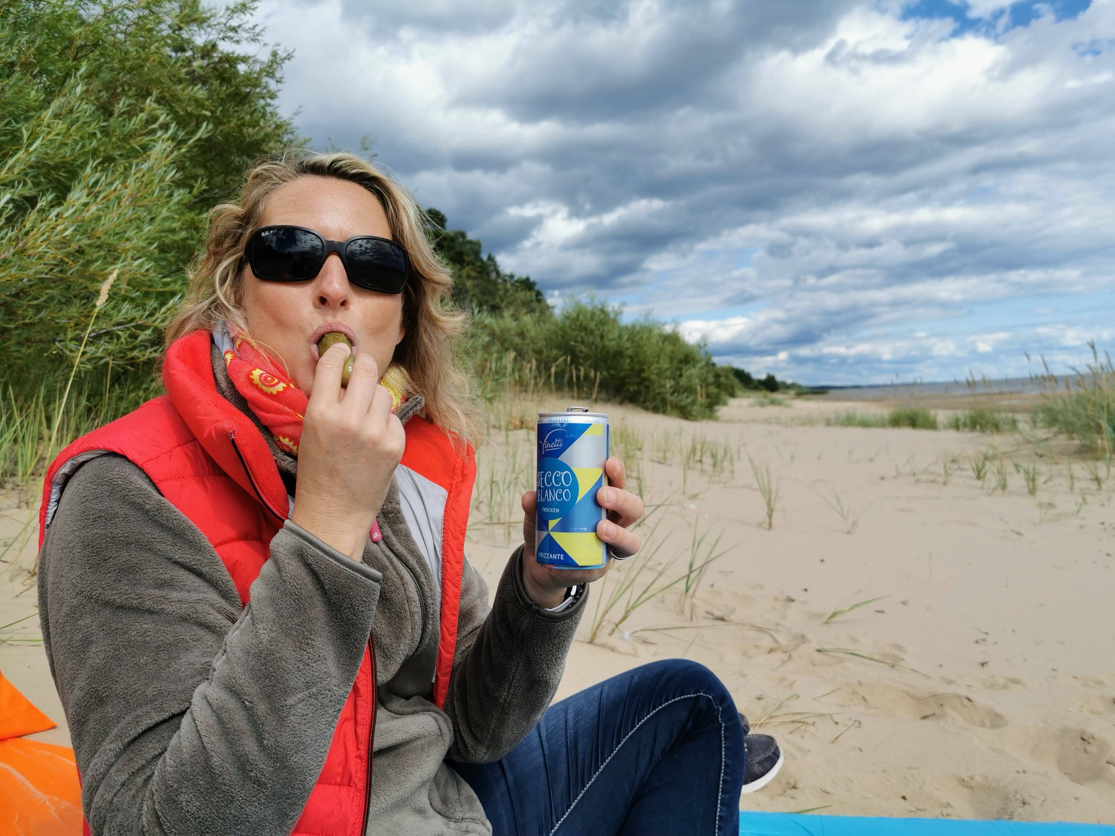 Nachdem wir ca. zwei Stunden den Nachmittag genossen hatten, kam eine dunkle Wolkenfront auf, die wir für unseren selbstgemachten „Peipuss Burger“ nutzten. Nach dem späten Mittagessen gingen wir wieder an den Strand und genossen die Abendsonne – und auch diese Zeilen entstehen gerade hier am Strand.