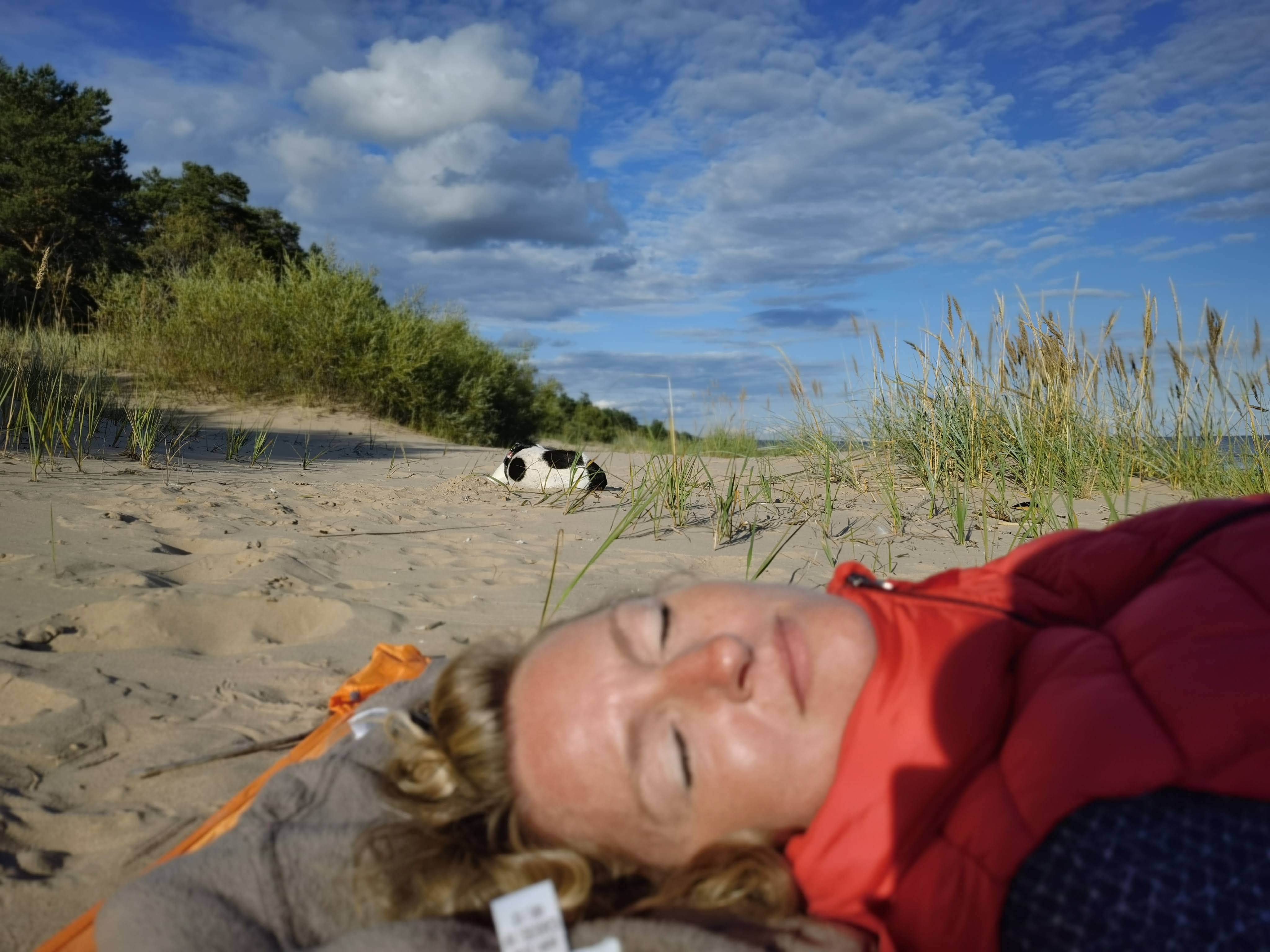 Wir gingen unseren „privaten“ Aufgang zum Strand und es war der Wahnsinn. Ein wirklich toller Sandstrand am Nordufer des Peipus See – also ein Südstrand (wie in Wilhelmshaven…)