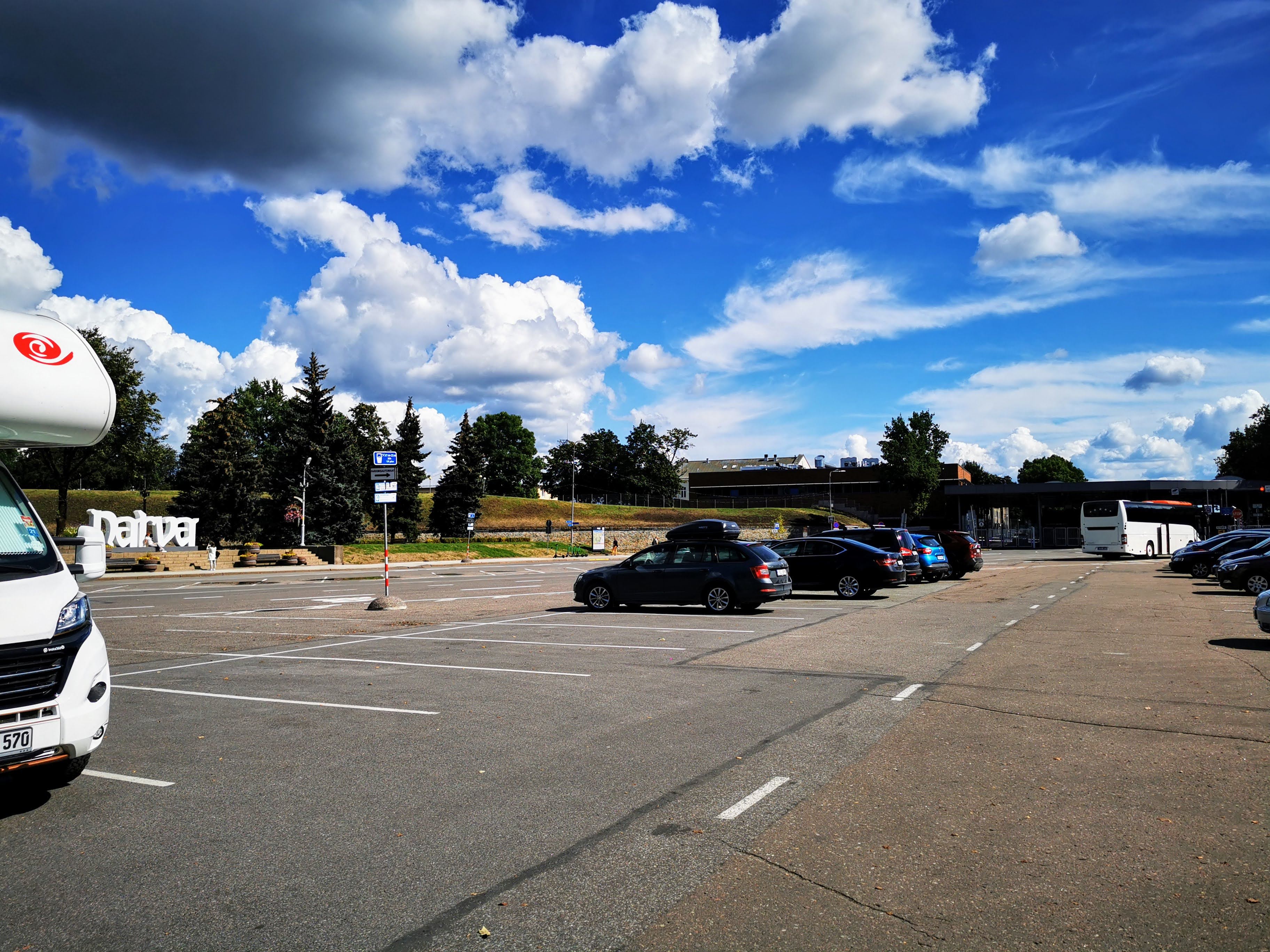 Nach dem Frühstück und der üblichen Routine brachen wir zur ca.100km langen Fahrt nach Narva auf. Was wir nicht wussten: Narva ist die drittgrößte Stadt Estlands und dementsprechend – trotz ihrer „Abgelegenheit“ im Nordosten des kleinen Landes – super gut zu erreichen. Wir fuhren direkt einen Parkplatz am Grenzübergang nach Russland / Ivangorod an und waren überrascht, wie wenig hier los war. Der Grenzübergang liegt direkt in der Stadt, aber da der Grenzverkehr für Privatleute, bzw. zu touristischen Zwecken im Moment fast gänzlich unterbunden wird, sah man eigentlich nichts…