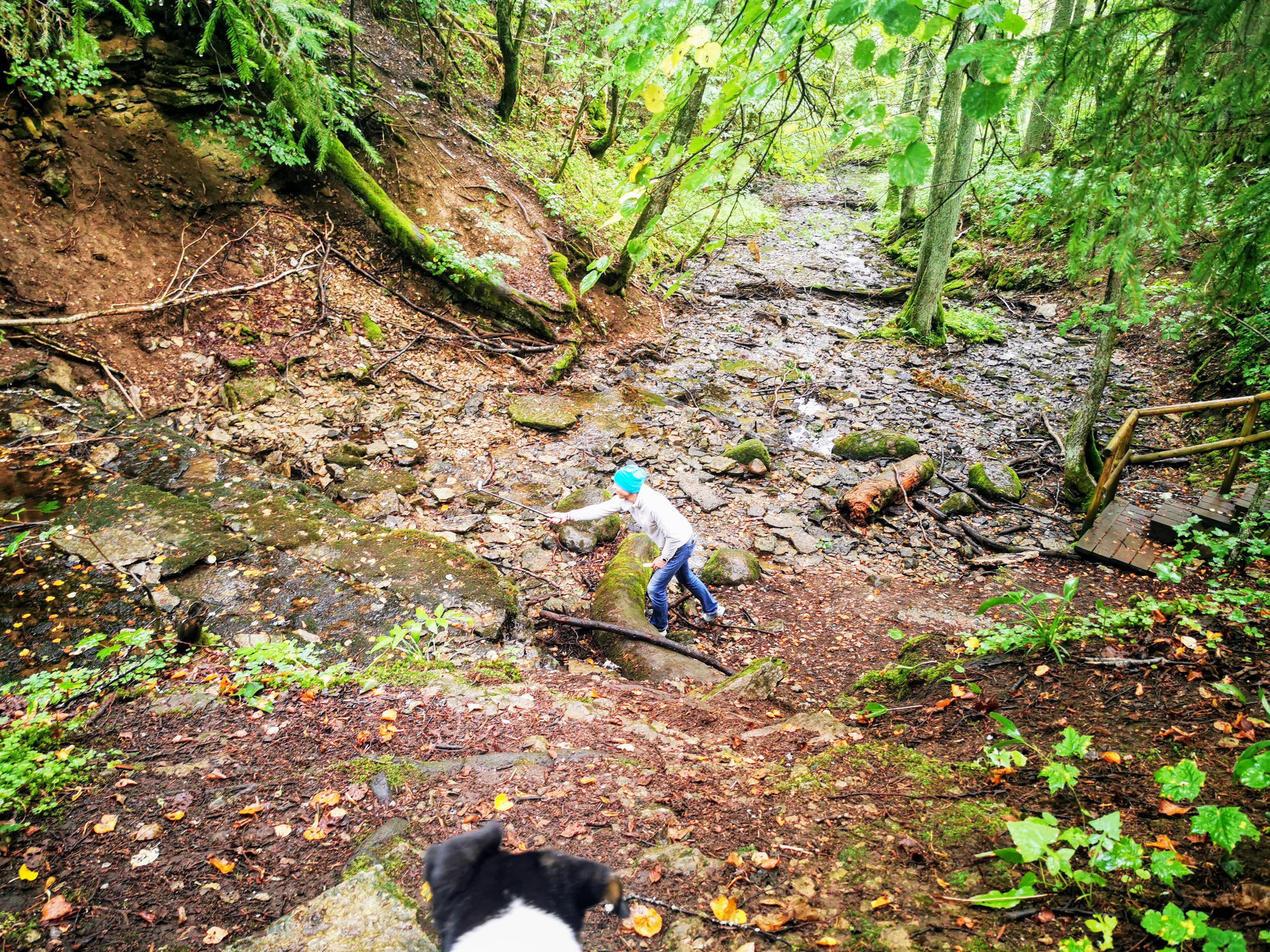 Für die ca. 90km nach Tallin hatten wir uns ein paar „Schleifen“ in die Routenführung eingebaut um noch 3 Wasserfälle hier im Lahemaa Nationalpark einen Besuch abzustatten. Meistens sind solche „Spots“ zwar nicht besonders gut ausgeschildert, aber mit der RMK-App (Ihr erinnert euch: RMK = estnische Fortsverwaltung) kann man alle offiziellen Wanderwege, -Parkplätze, Grill- und Zeltplätze, sowie weitere „Natur-Highlights“, wie z.B. Wasserfälle auf einer Karte einblenden und sich nähere Informationen, bzw. Koordinaten anzeigen lassen.