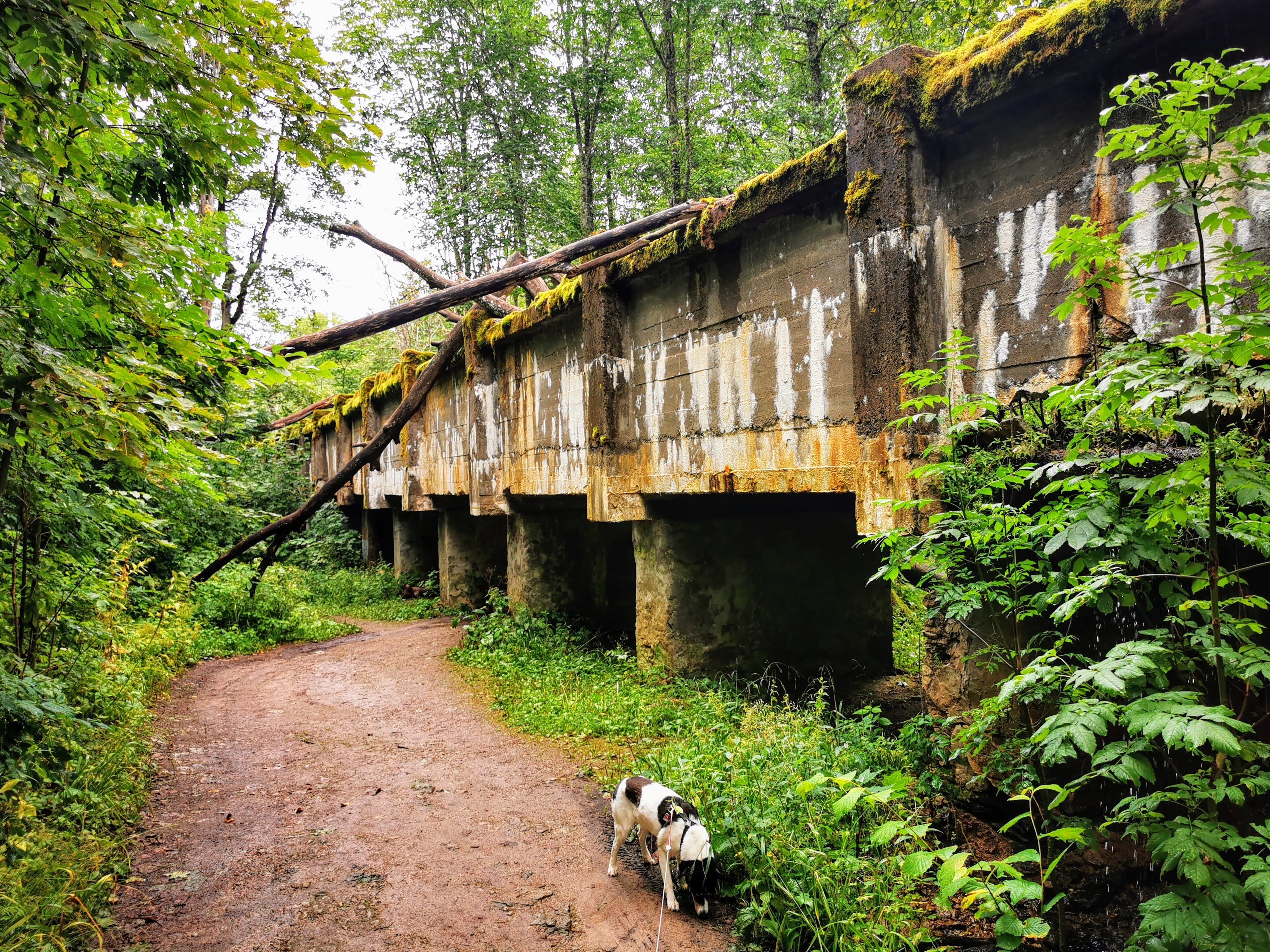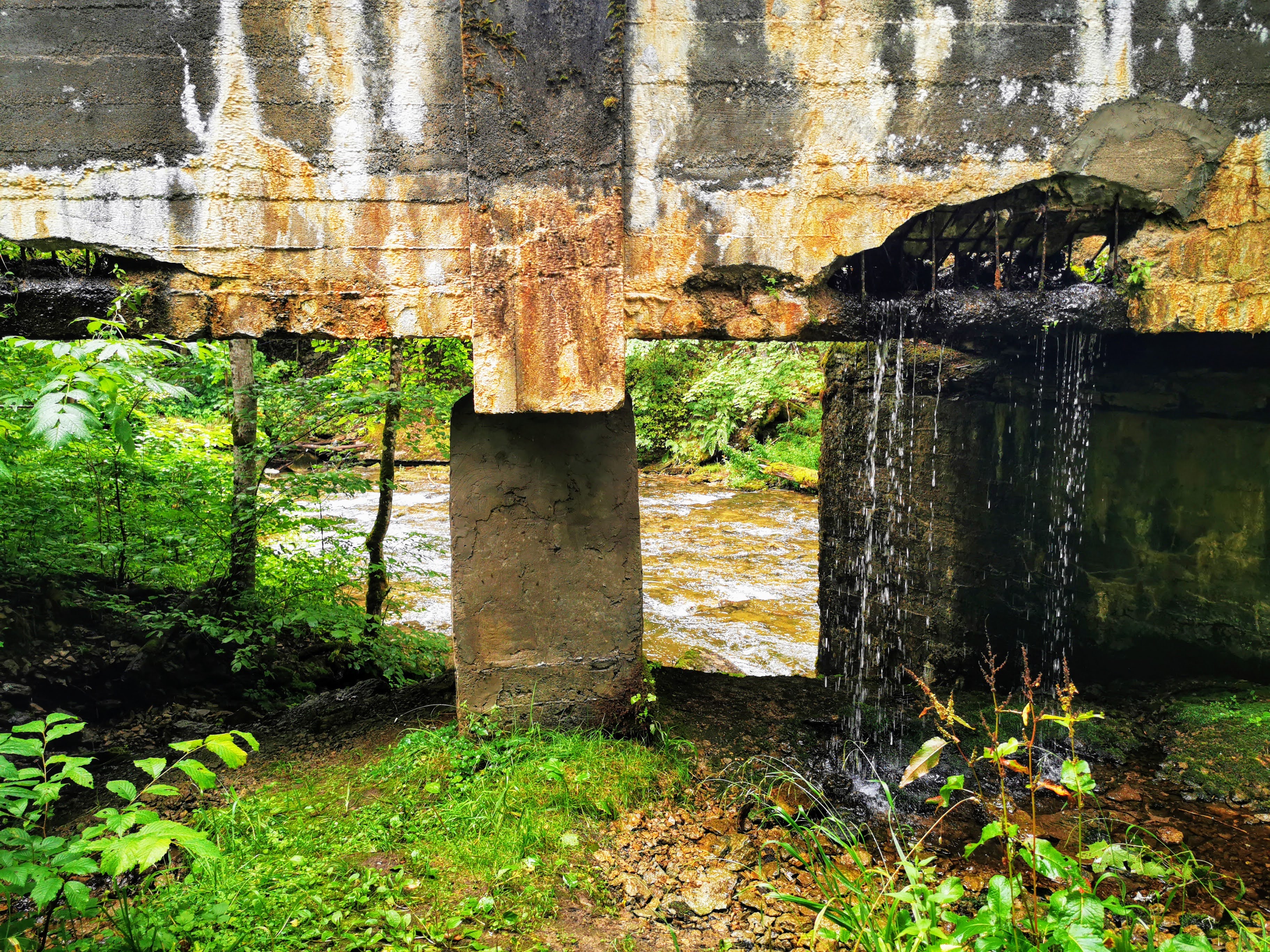 Beim zweiten Wasserfall „Nõmmeveski“ handelt es sich auch um einen eher niedrigen Wasserfall, da er nur 1,2m tief fällt, aber er ist mit 16-17m Breite mit vielen anderen größeren hier in Estland zu vergleichen. Hier war der Wanderweg rund um den Wasserfall schon spannend und es gab noch eine alte ewig lange betonierte – „Wannenartige“ Eisenbahntrasse /-Brücke, die dem ganzen hier einen „Lost-Place“-Geschmack verlieh. Leider haben wir auch im Nachhinein nicht recherchieren können, was der Zweck dieser Betonkonstruktion ist/war. Wieder ein merkwürdiger Bau aus Sowjetzeiten…
