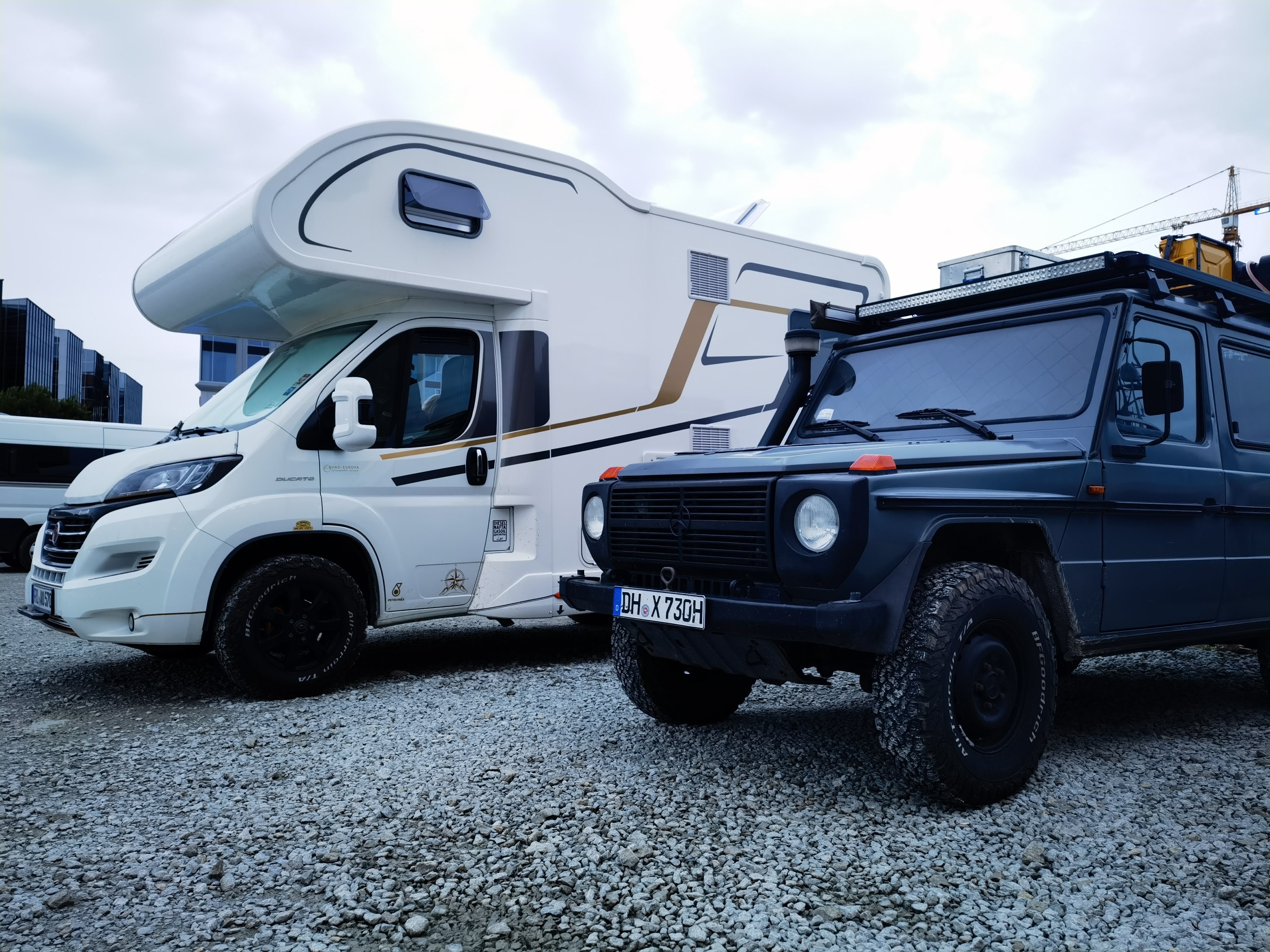 Zurück beim Reisemobil sahen wir direkt, dass wir deutsche Nachbarn bekommen hatten. Ein alter Bundeswehr – „Wolf“ aus Diepholz mit einem jungen Päärchen als Besatzung.