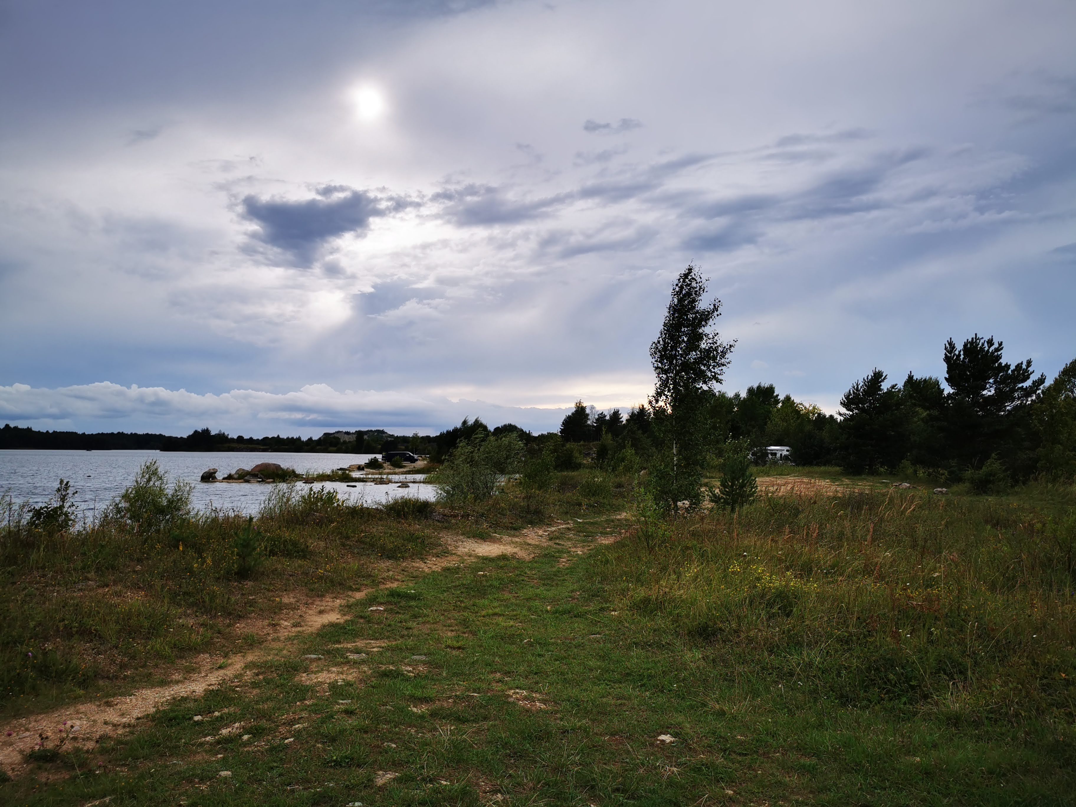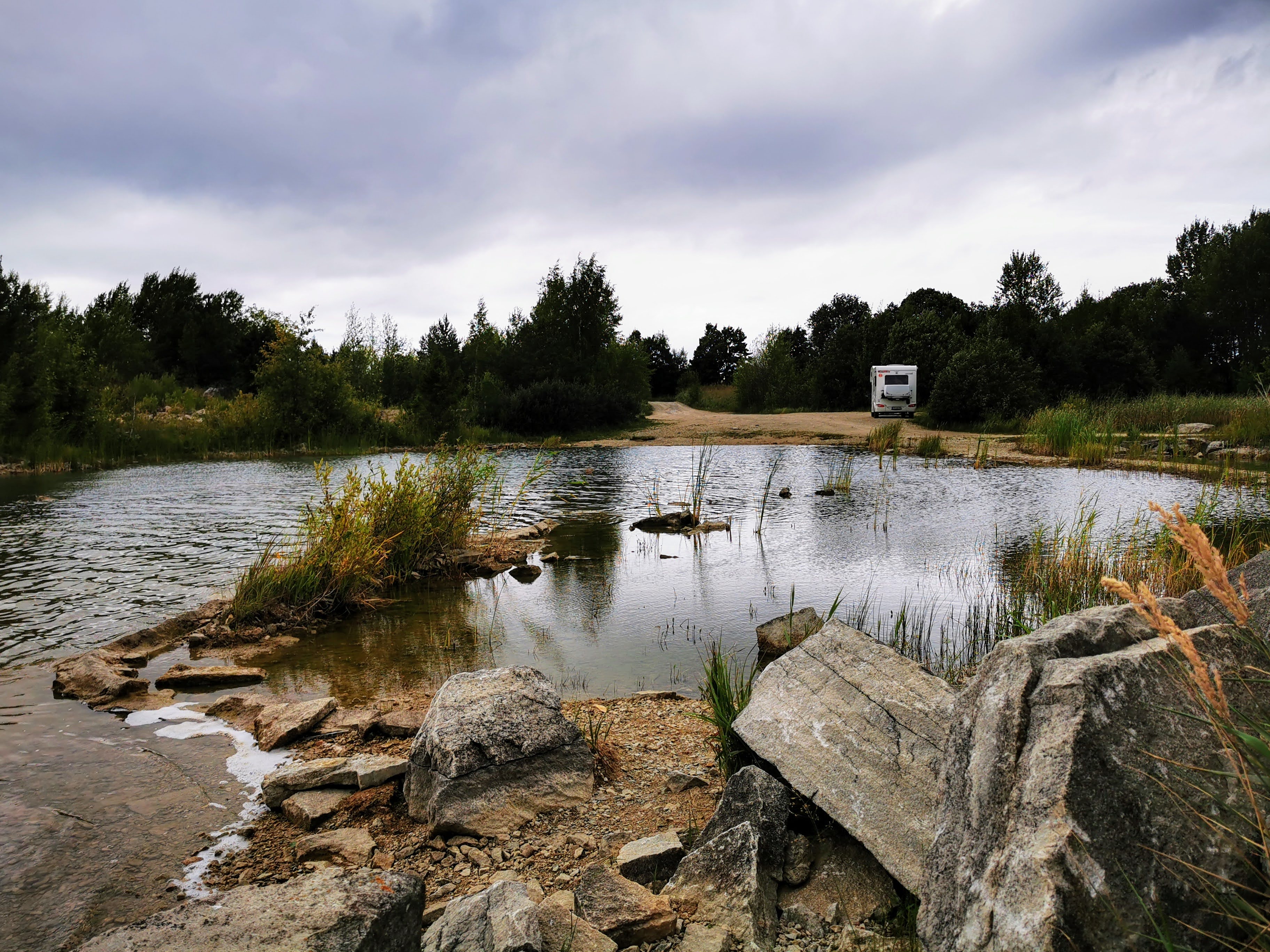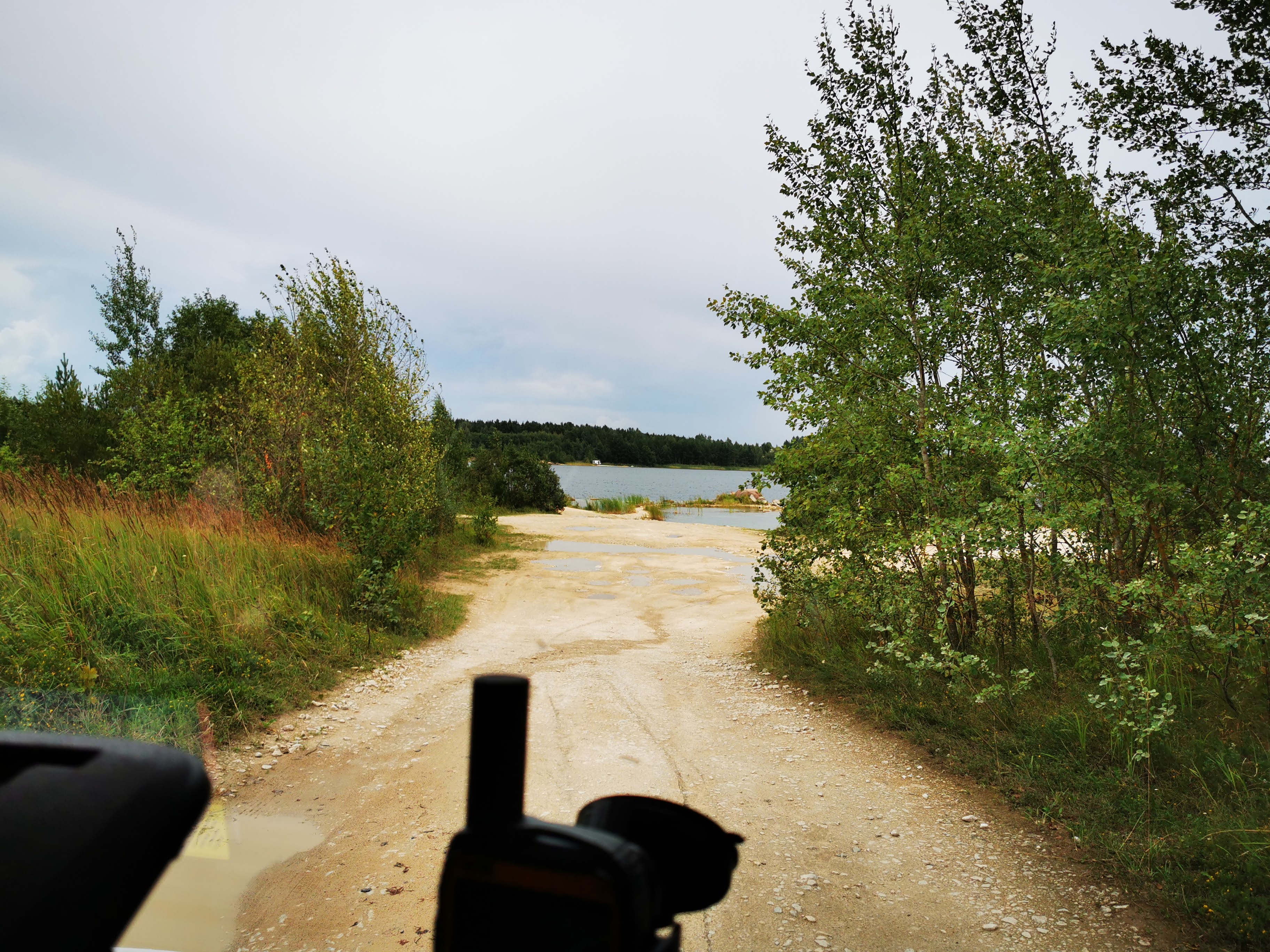 Nach 20 minütiger Fahrt kamen wir an der Steilküste an und irgendwie fühlten wir uns hier nicht wohl. Auch das kann vorkommen. Also ein paar Alternativen gesucht: an einem ehemaligen Baggersee, ca. 30Kilometer entfernt, sollte es auch tolle Plätze geben. Hoffentlich sind die entspannter zu erreichen. Die Fahrt war schnell gemacht, aber auch hier war die Anfahrt spannend. Hügelig und sandig trifft zwar als reine Beschreibung zu, gibt aber natürlich nicht Auskunft darüber, wie man dann mit einem 3,5 Tonnen Wohnmobil da hin kommt.