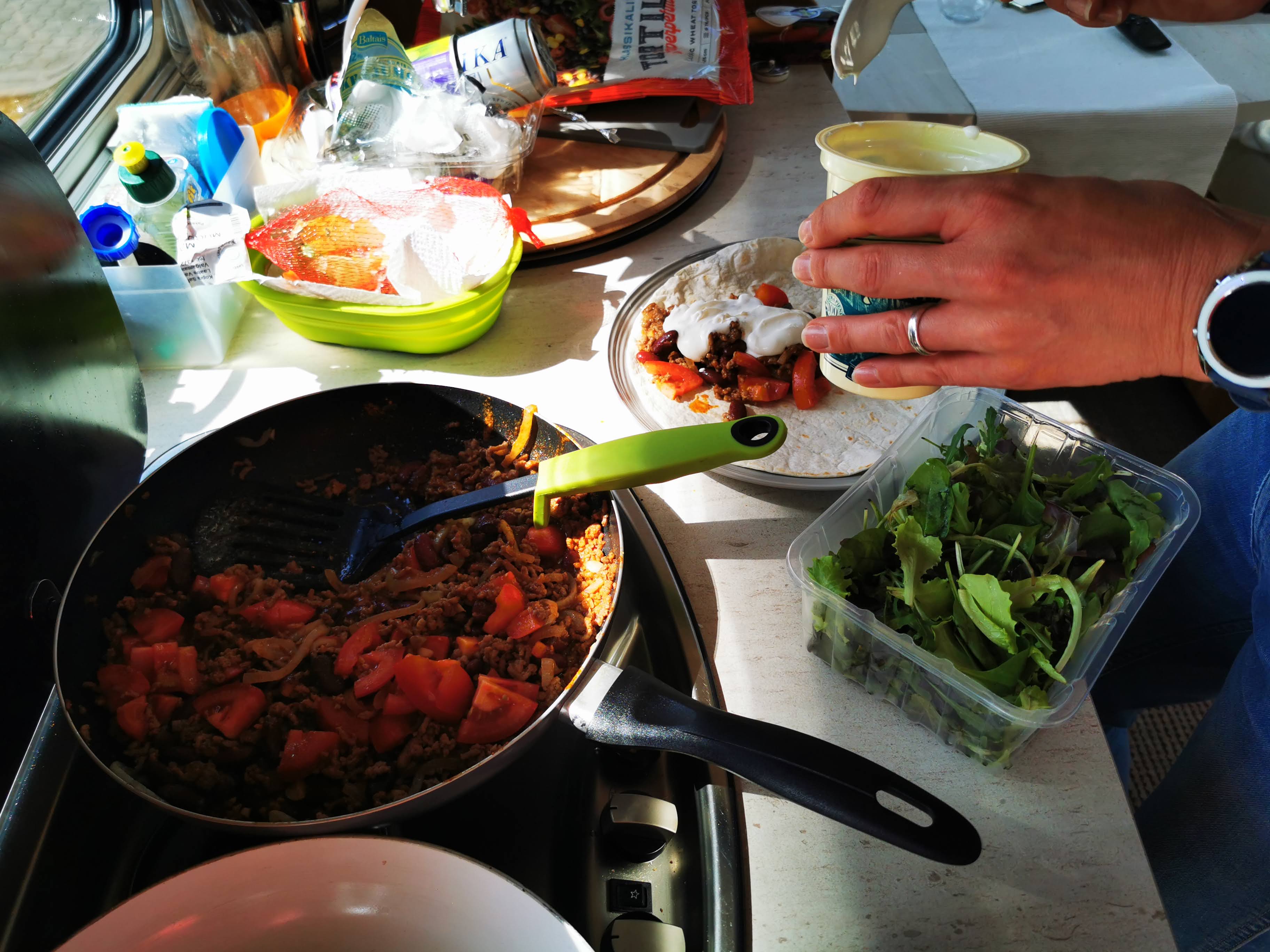 Zurück am City Camping machten wir uns noch Wraps zum Mittag und wuschen auch noch ab, da wir ja hier noch die Möglichkeit hätten, das Grauwasser zu entsorgen und frisches Wasser zu Tanken.
