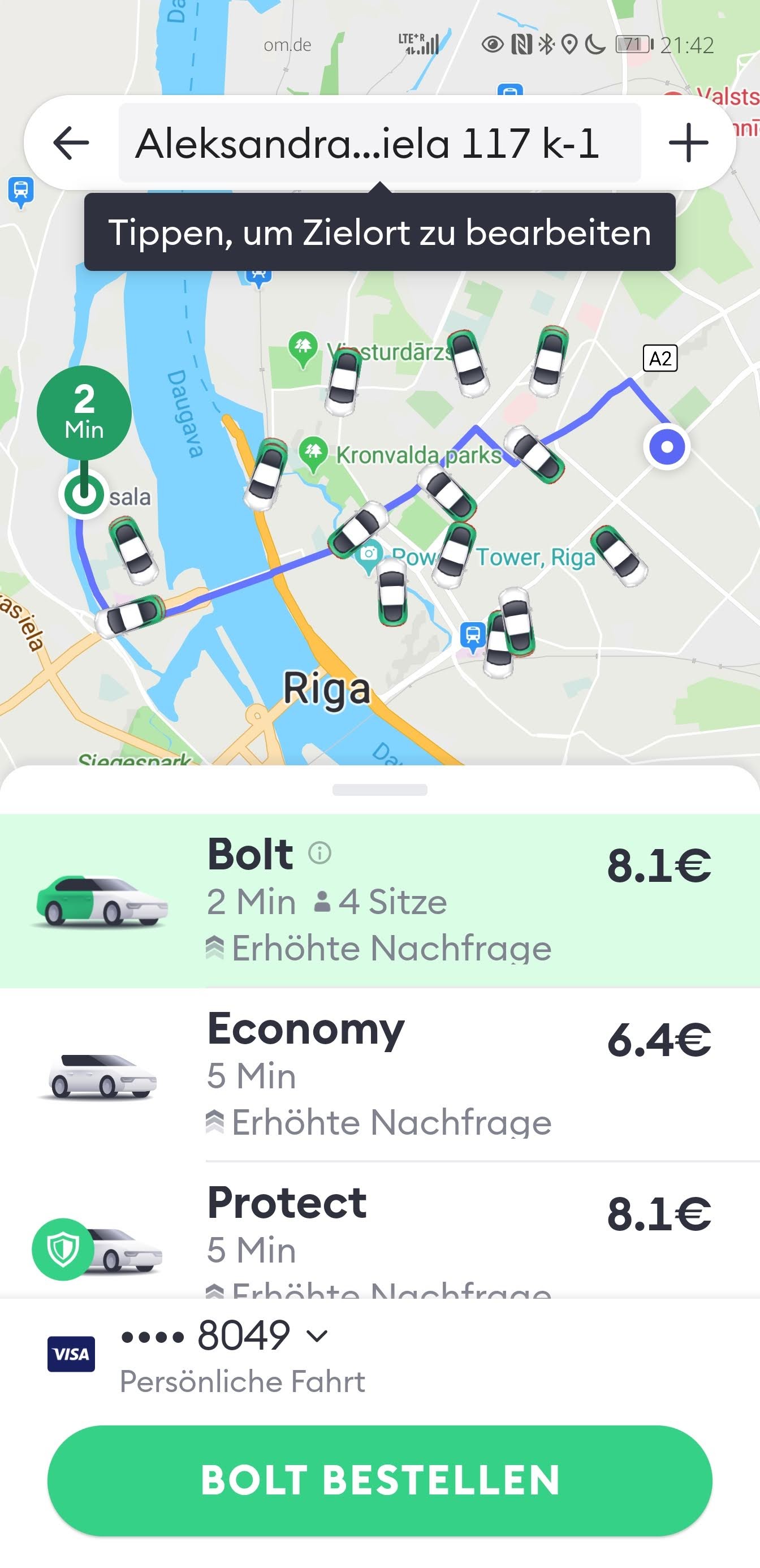 Obwohl der City Camping – u.a. durch die Reisegruppe der Italiener – rappelvoll war, war es während der Nacht und heute morgen erstaunlich ruhig. Wir starteten entspannt die Morgenroutine und ließen Cindy mit einem gutem Gewissen zurück. Es sollte nicht heiß werden, nicht regnen und somit konnten wir die Dachluken geöffnet lassen und Frau Hund könnte sich ein wenig entspannen. Wir denken, dass es schon anstrengend für sie auf Reisen ist, zu Hause schläft sie bis 14 Uhr, wenn wir aus dem Haus gegangen sind. Eigentlich wollten wir mit der – gestern Abend schon heruntergeladenen – BOLT-App (u.a. ein Taxi-Dienst) in die Altstadt fahren, aber irgendwie waren wir dann doch der Meinung, dass es uns – nachdem die Runden mit Cindy ja im Moment wesentlich kleiner ausfallen – gut tun würde, wenn wir den Gang zu Fuß antreten würden.