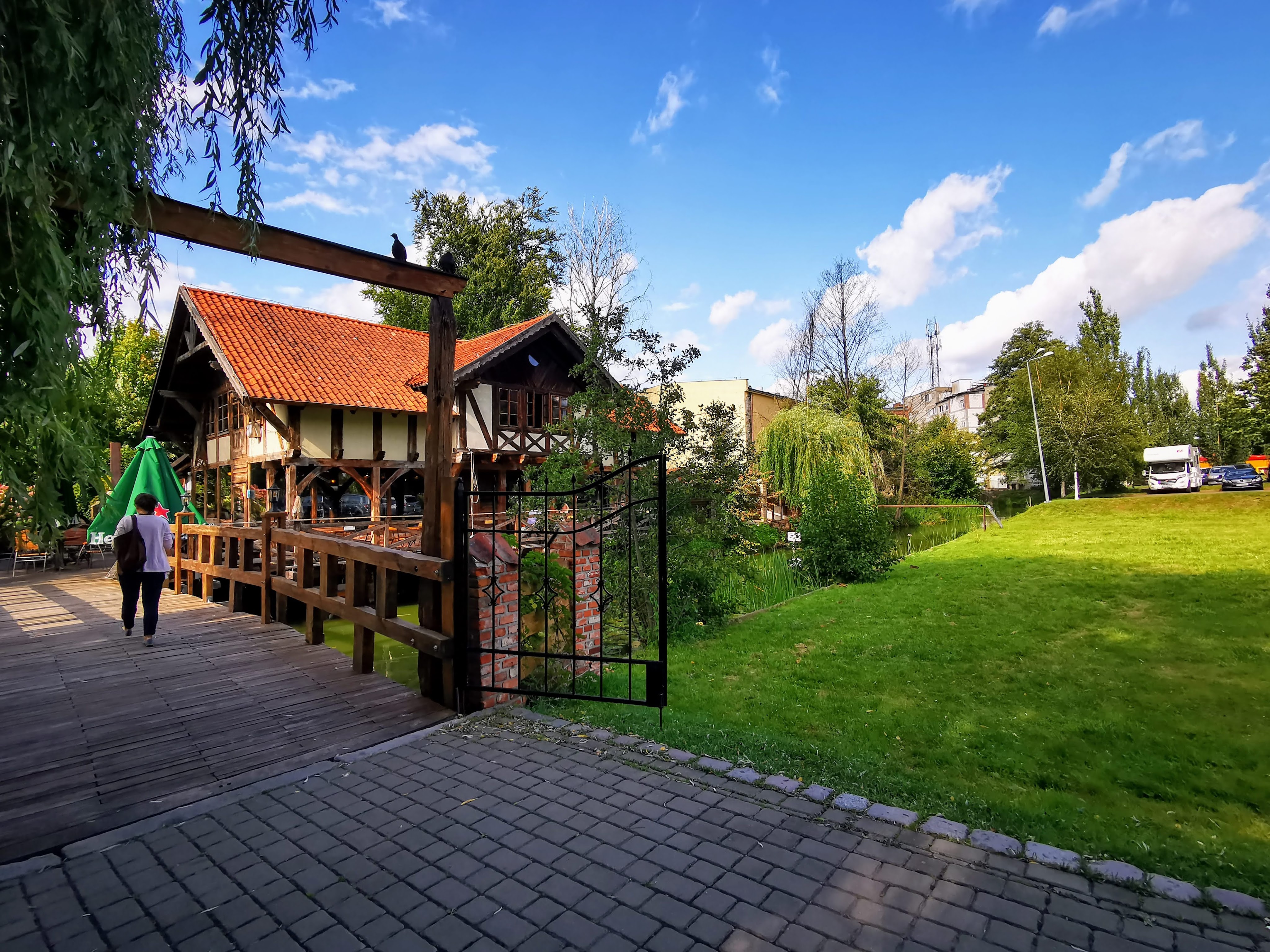 Am Parkplatz angekommen, mussten wir feststellen, dass er – selbstverständlich – gut belegt war. Die Passagiere der beiden kleinen Fahrgastschiffe, die gerade im Begriff waren, am Steg anzulegen,hatten hier ihre Fahrzeuge abgestellt und würden dann gleich verschwunden sein. Bei „IOverlander“ fanden wir die Beschreibung, dass man am besten erst gegen 17 Uhr ankommt und am nächsten Morgen – wenn´s geht um 0900 Uhr wieder abfährt. Dann hätten die Kapitäne der Schiffe nichts dagegen, dass man hier nächtigt. „Freistehen“ ist in Polen ja offiziell nicht erlaubt und wenn die Community möchte, dass solche „Spots“ bestehen bleiben, sollte man diese Art von „agreement“ wohl eingehen.