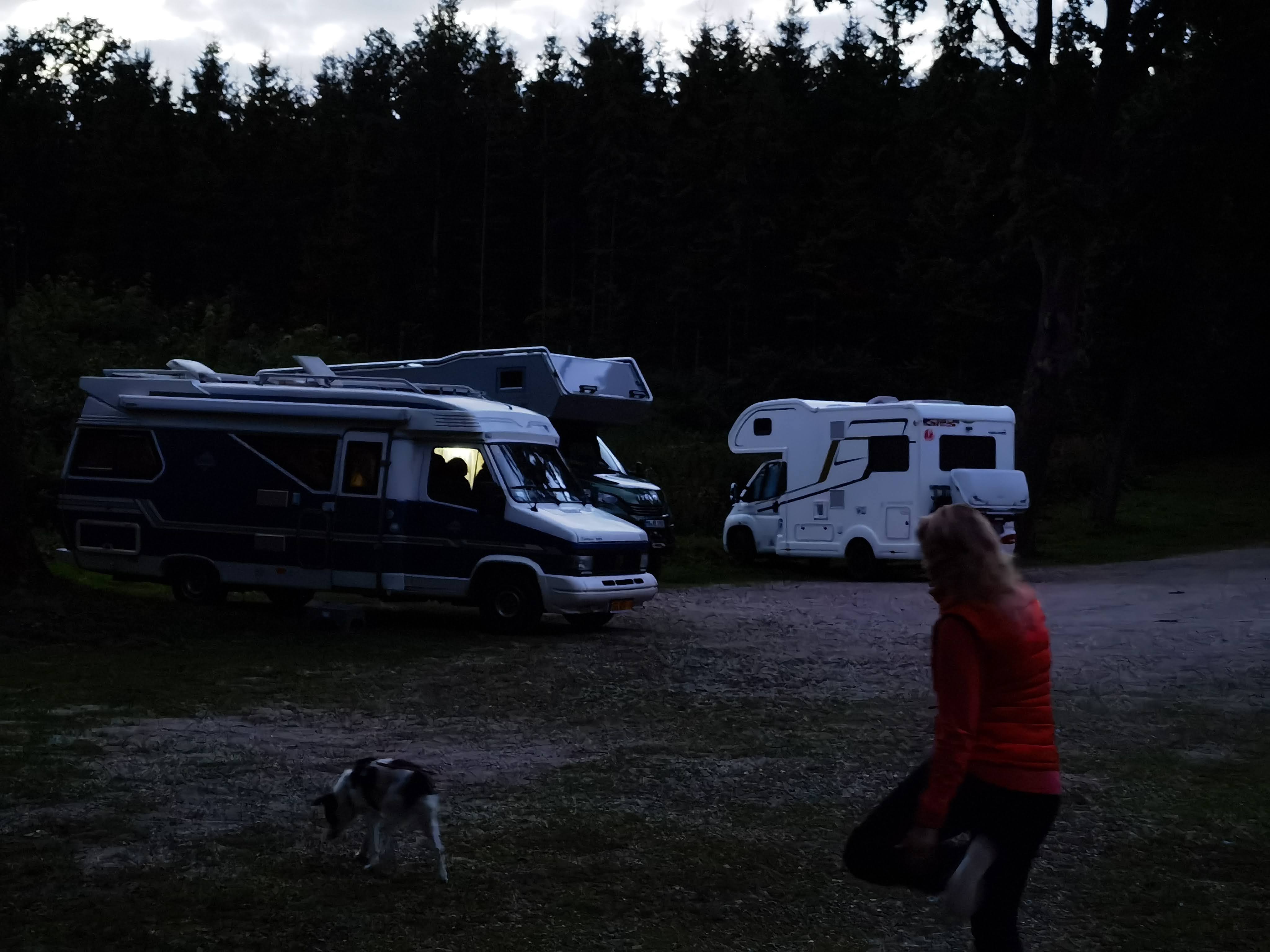 Die beiden Mobile, die vor uns schon da gewesen waren, schickten sich mit uns parallel an, ihre Fahrzeuge auf dem Platz zu nivellieren – ohne Keile oder Kissen zu benutzen. Eine solche Tätigkeit wird innerhalb der community schon als „campinghaftes Verhalten“ gewertet und ist dementsprechend verpönt. Bisher hat es bei uns auch immer gut geklappt, wir bereiten auf solchen „Freisteh-Plätzen“, die irgendwo im Nirgendwo sind, unser Auto immer auf einen „jump-start“ hin, falls man innerhalb kürzester Zeit in der Nacht, oder am nächsten Morgen spontan los muss. D.h. es liegt nichts lose im Mobil rum, alles ist so verstaut, als würden wir fahren. Unsere Nivellierungskissen benutzen wir dann natürlich auch nicht, sondern rangieren so lange rum, dass wir einigermaßen sicher sind, dass die Dusche am nächsten Morgen abläuft 😉