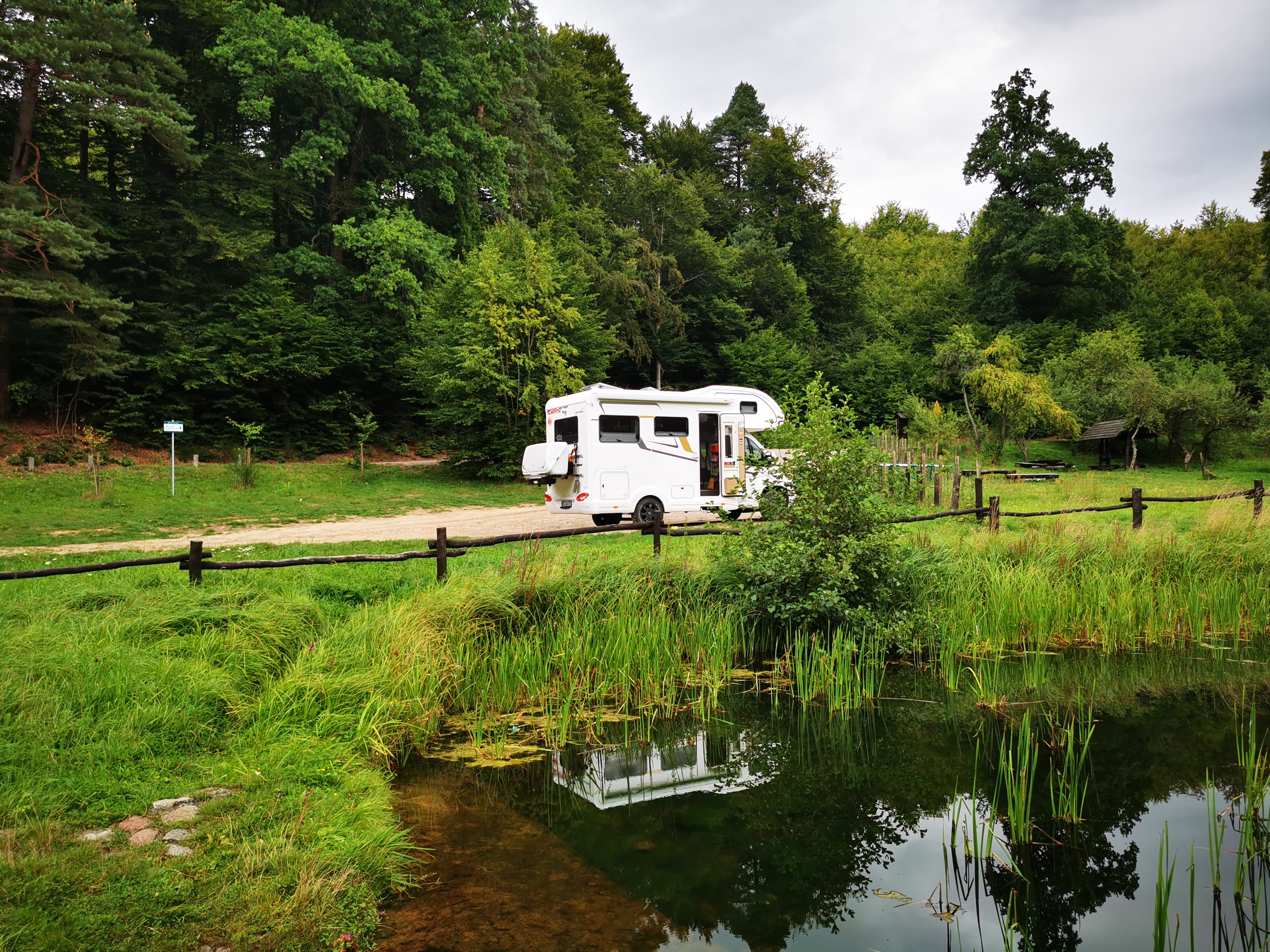 Als Alternative – falls wir nicht über Nacht in Osterode bleiben würden – hatten wir uns einen Parkplatz direkt am Oberländer Kanal ausgesucht. Den kostenlosen Campingplatz, den wir 2015 hier besuchten und den ich vorgestern schon kurz angesprochen hatte – gibt es so nicht mehr, er wird offenbar jetzt von irgendjemanden „betrieben“ und ist seit 2 Jahren kostenpflichtig. Da wir ja auch keine Dopplungen wollten und wir eigentlich nicht für Dienstleistungen bezahlen wollen, die wir nicht nutzen, dachten wir, dass der Parkplatz 5 Kilometer davor eine gute Wahl sein würde. Die Anfahrt, war nicht mehr ganz so holperig wie 2015, es wurde die Straße schon teilweise erneuert, aber noch nicht ganz fertig gestellt.