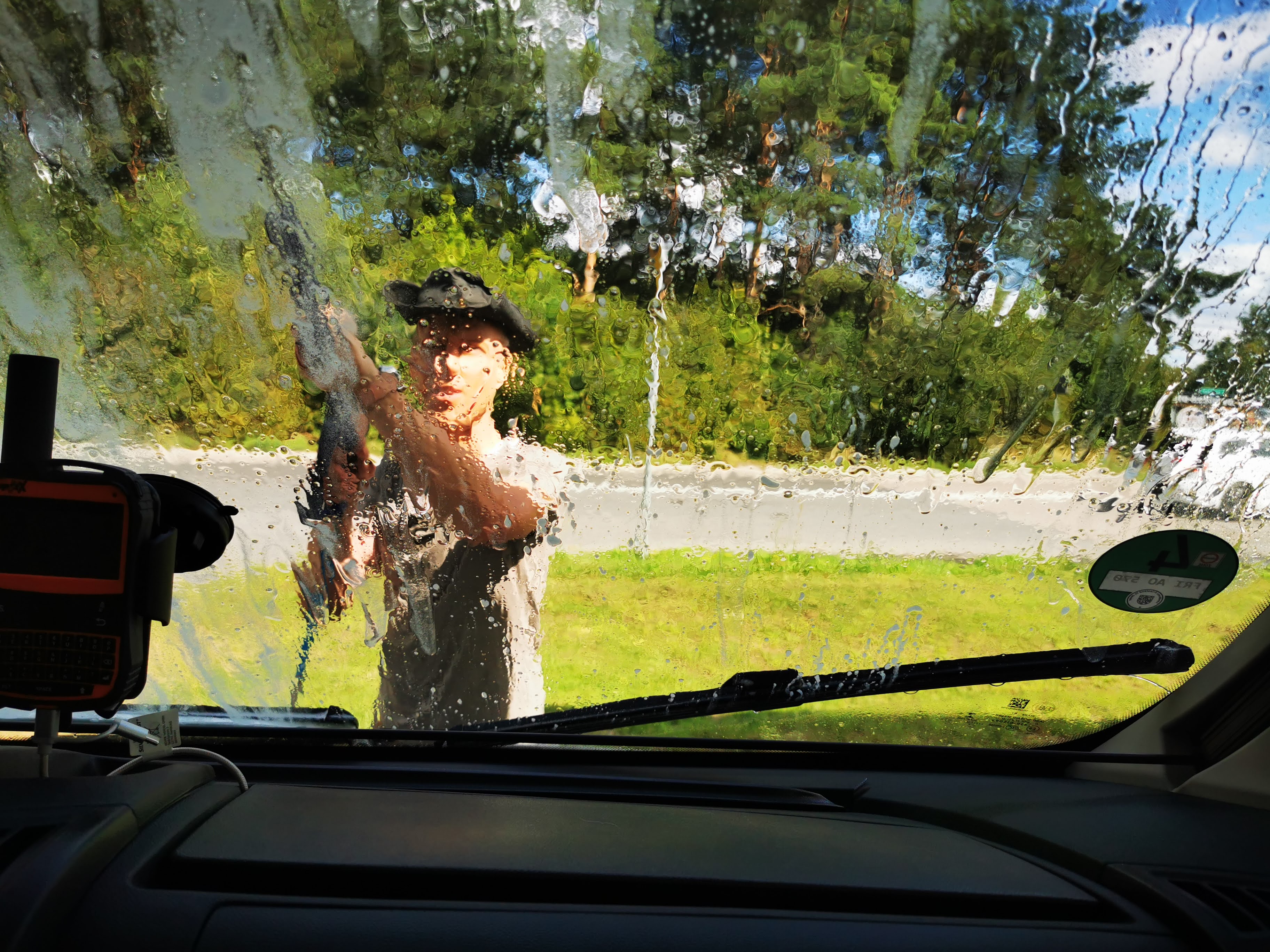 Da wir auch noch Grauwasser entsorgen wollten und wir vom Wäschewaschen nun noch 35 Zloty in Münzen hatten, fuhren wir eine SB-Waschbox an und ich reinigte ungelogen ca. eine halbe Stunde lang gründlichst unser Reisemobil für umgerechnet etwa 7,50€. Das hatte sich also nicht geändert seit 2015 – die Waschboxen sind unschlagbar günstig im Vergleich zu Deutschland.