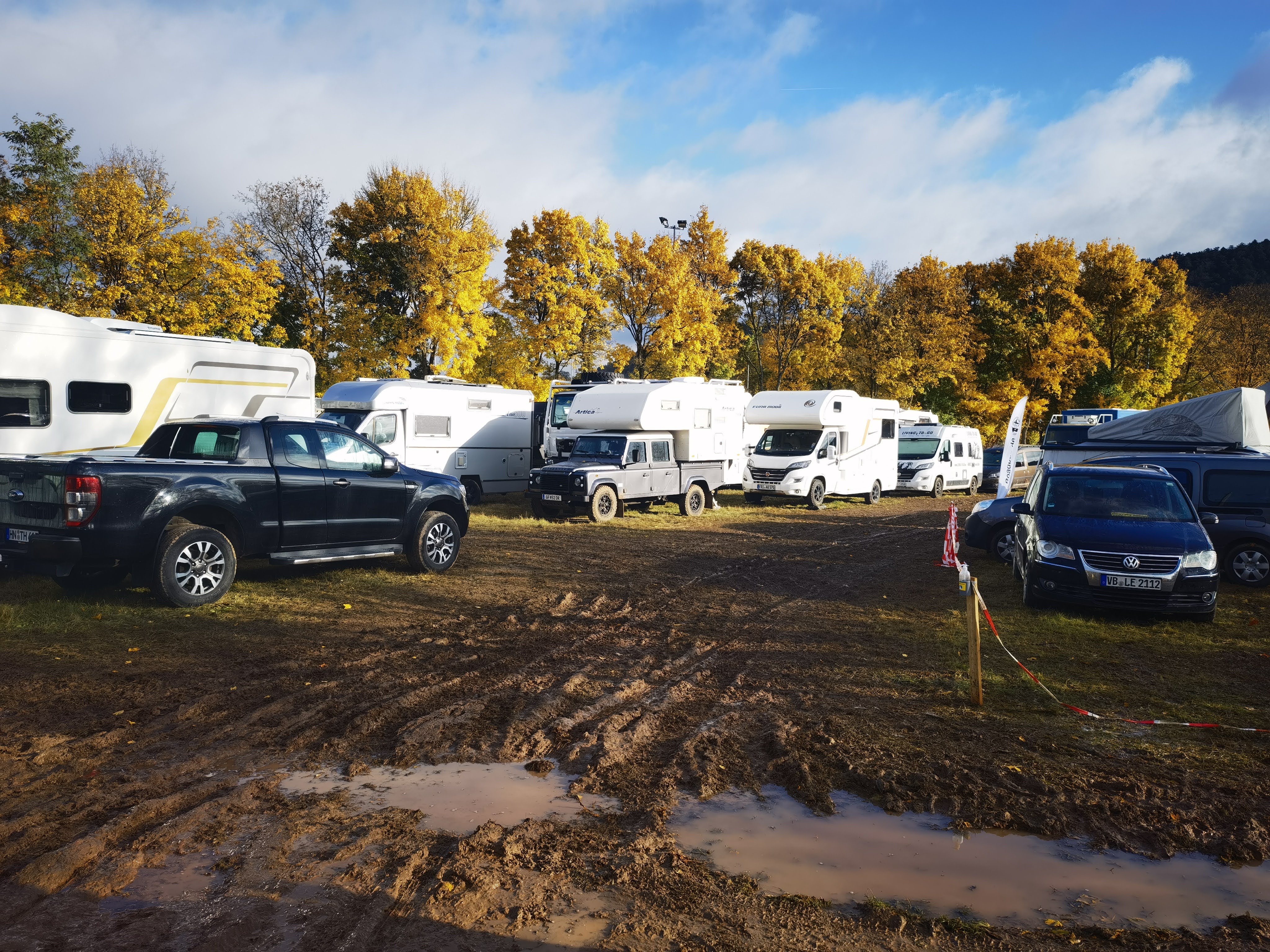 Wir füllten unsere Wasservorräte auf und saugten anschließend noch schnell an der gegenüberliegenden Waschstraße unseren Wohnraum mit dem Münzsauger aus. Nun war auch Kathleen froh, dass ich den Teppich im Fahrerraum vor der Herbstreise durch passgenaue 3D-Gummi-Fußwannen getauscht hatte, die wir auch schnell mit klarem Wasser spülen konnten.