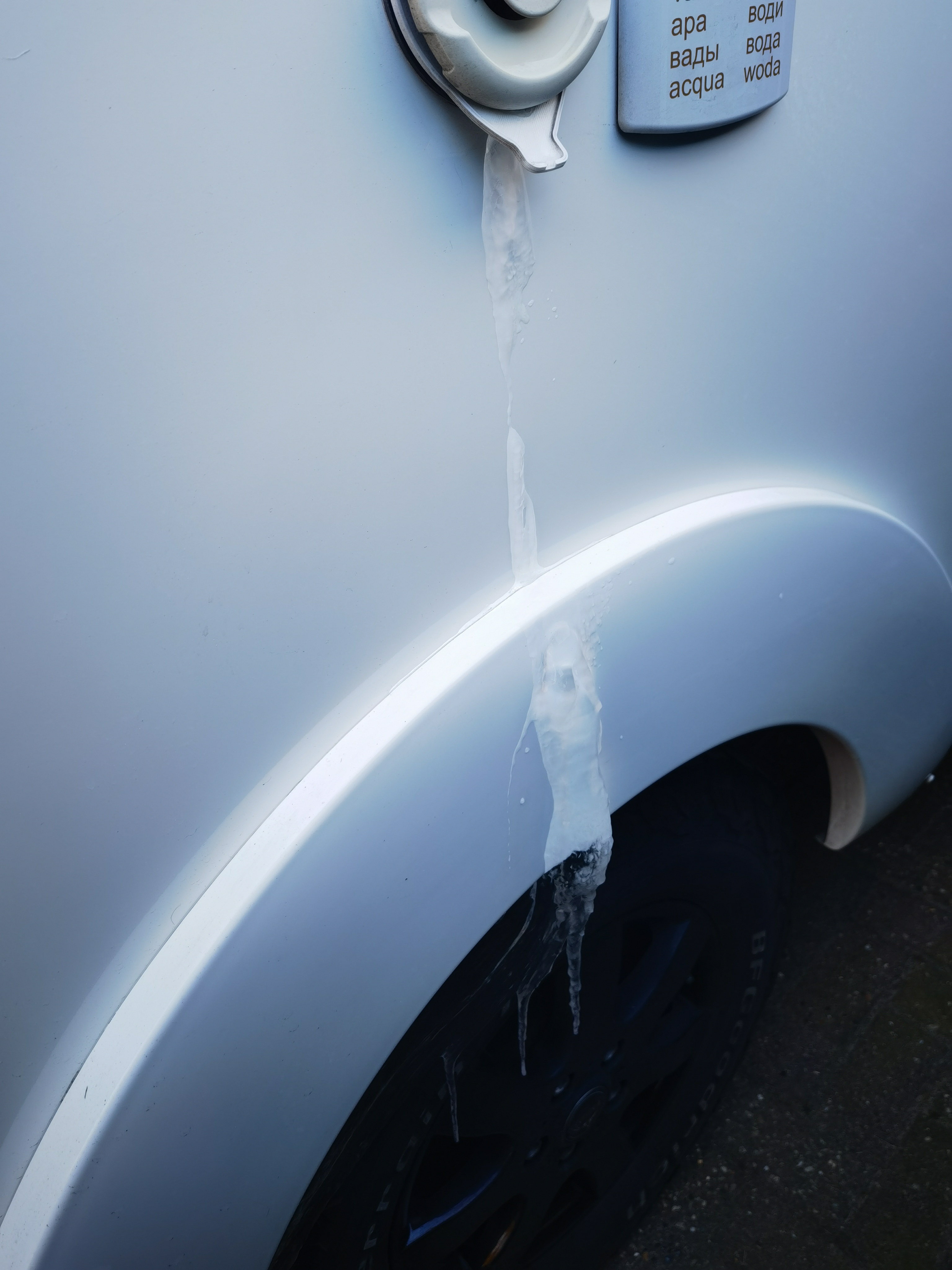 Das Kondenswasser aus dem Abgasauslass der Heizung ist bei den Nachttemperaturen auf jeden Fall mal gefroren…