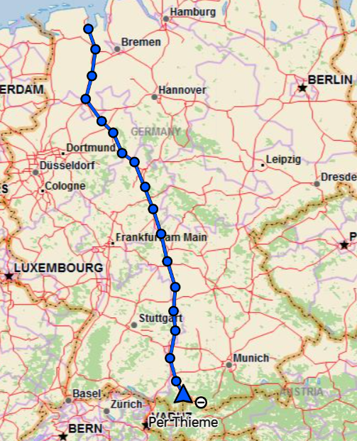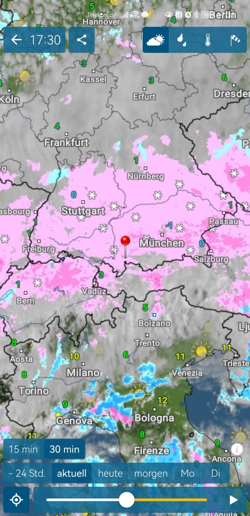Gegen 1400 machten wir eine Pause in Nattheim – besorgten uns bei der örtlichen Pizza-/Dönerschmiede zwei wunderbare Pizzen und nutzen für 2 Stunden den kostenlosen Stellplatz. Ich schaltete über die AsfinAG APP „unterwegs“ die 10Tages-Vignette frei und wir überlegten, ob wir nicht hier übernachten wollten. Wir entschieden uns aber dann dafür, noch weiter an die Österreichische Grenze zu fahren.