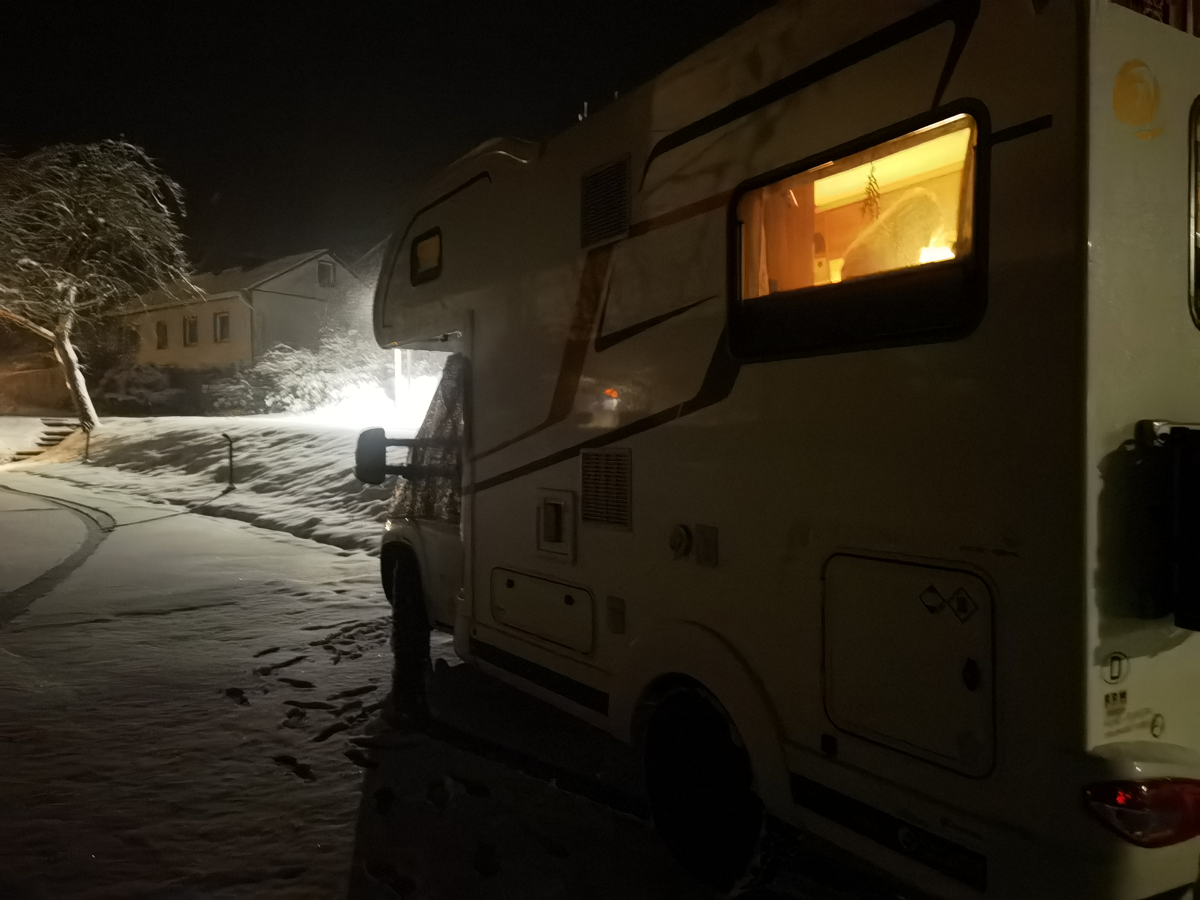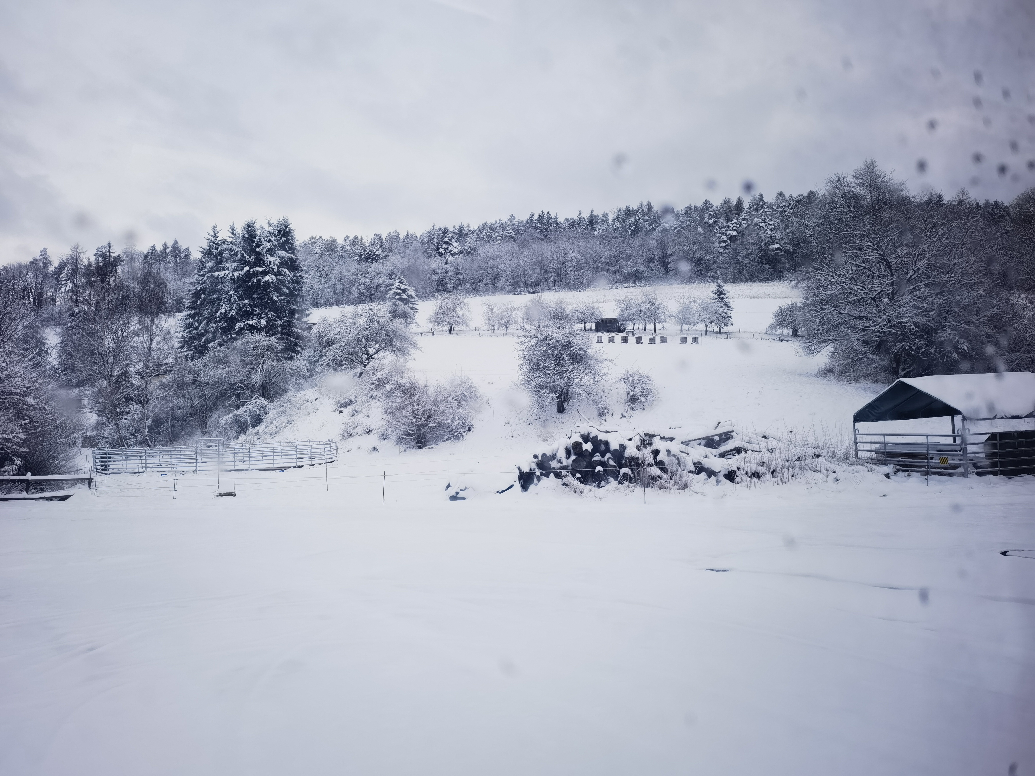 Am Freitag ging es gegen 1800 Uhr los. Wir hatten geplant bis in den Habichtswald zu fahren – dieser liegt ein paar Kilometer vor Kassel. Die ersten zwei Stunden fuhr Kate, dann wechselten wir und ich löste sie ab. Nach meinen 2 Stunden setzte ein fieses Schneetreiben ein. Das war aber nicht weiter wild, weil wir zu dem Zeitpunkt schon weiter als gedacht gekommen waren. Wir waren nicht „nur“ bis zum „Habichtswald“, sondern bis zum „Knüllwald“ gefahren… 😉