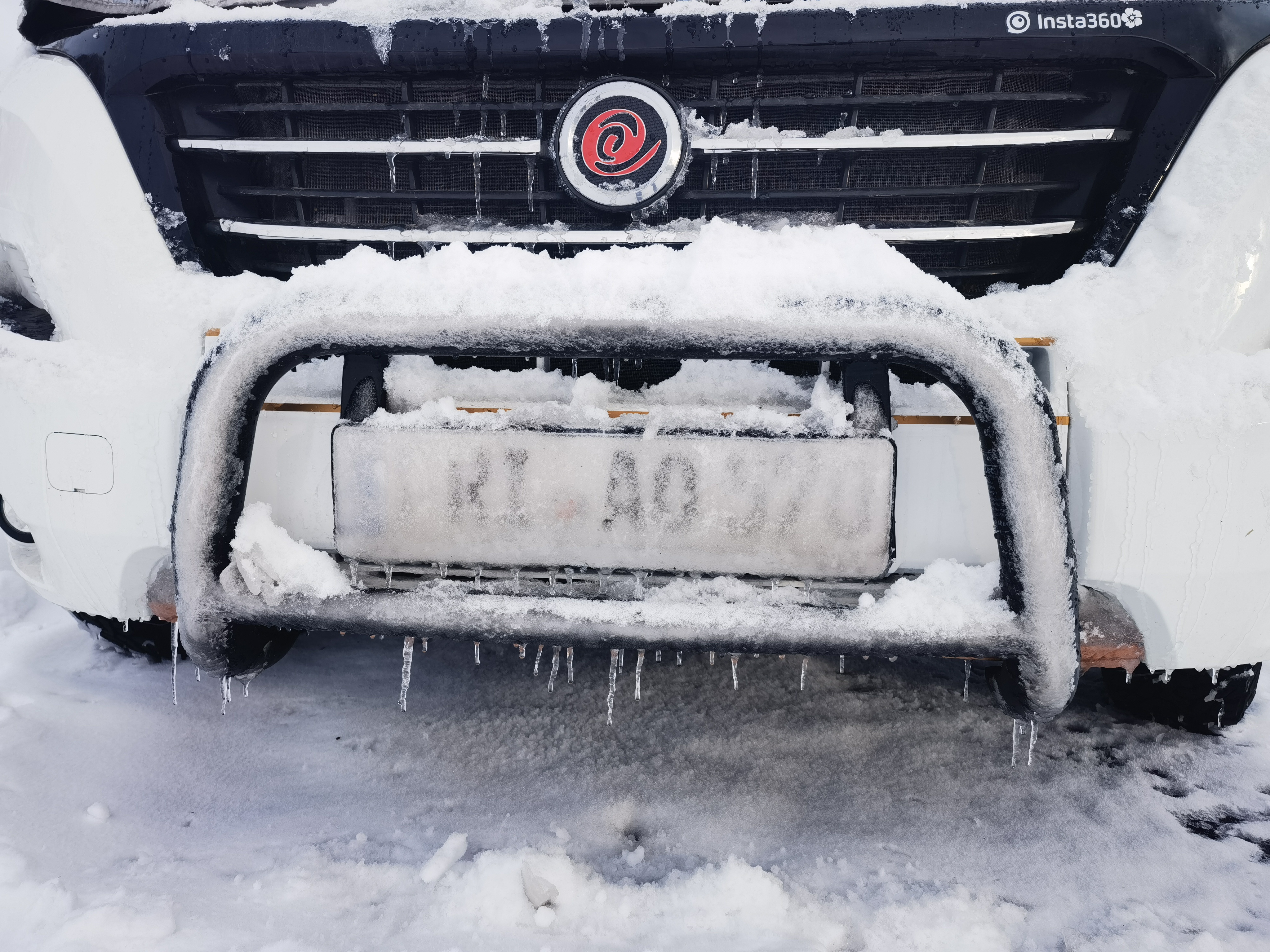Heute Morgen hatten wir während des Frühstücks einen kurzen Moment Sonne, aber danach war klar, dass wir den ganzen Tag durch ein „stationäres Schneeband“ fahren würden.