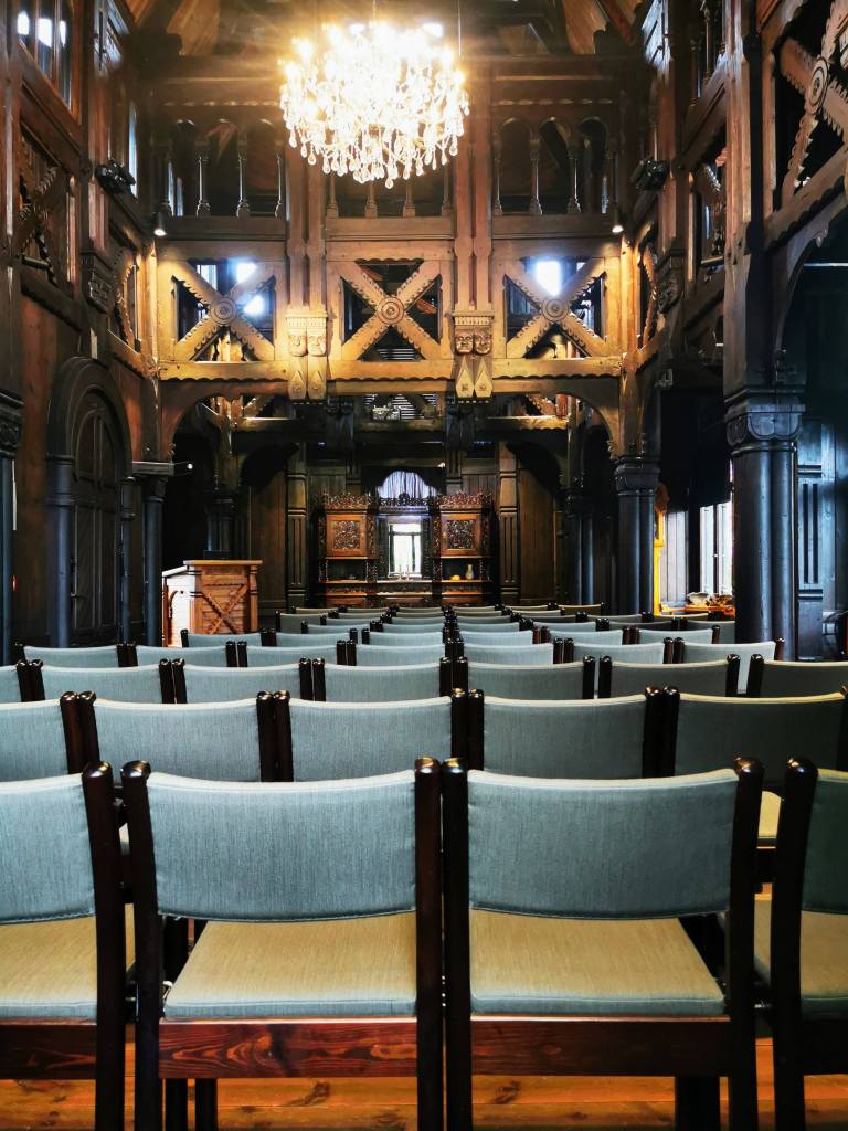 Wir kamen an einem Schild „Little Norway“ vorbei, welches auf uns einen „amerikanischen Eindruck machte…Genauso war es: Die „Stave Church“, bekannt aus Little Norway in Wisconsin, USA. Diese wurde ursprünglich in Strandheim Brug in Orhanger um 1893 erbaut, um während der Weltausstellung in Chicago als norwegischer Pavillon genutzt zu werden. Es war damals bekannt als „The Norway Building“. Heute ist dies das einzige Gebäude der Weltausstellung, das seine ursprüngliche Form bewahrt hat. 1936 wurde es von dem Einwanderermuseum „Little Norway“ in Blue Mounds in der Nähe von Madison, Wisconsin, erworben und dorthin transportiert. „Little Norway“ wurde 2012 aufgrund eines Rückgangs der Besucherzahlen geschlossen. Zu diesem Zeitpunkt prüften einige Freiwillige aus Orkdal in den USA die Möglichkeit, das Gebäude zurück zu kaufen. 2015 wurde ein Kaufvertrag abgeschlossen, das Gebäude Stück für Stück demontiert, in Container verladen und nach Norwegen transportiert und in Orkanger wieder aufgebaut. Jetzt ist der „Thams Pavilion“ endlich wieder zu Hause, 124 Jahre nach der Weltausstellung.