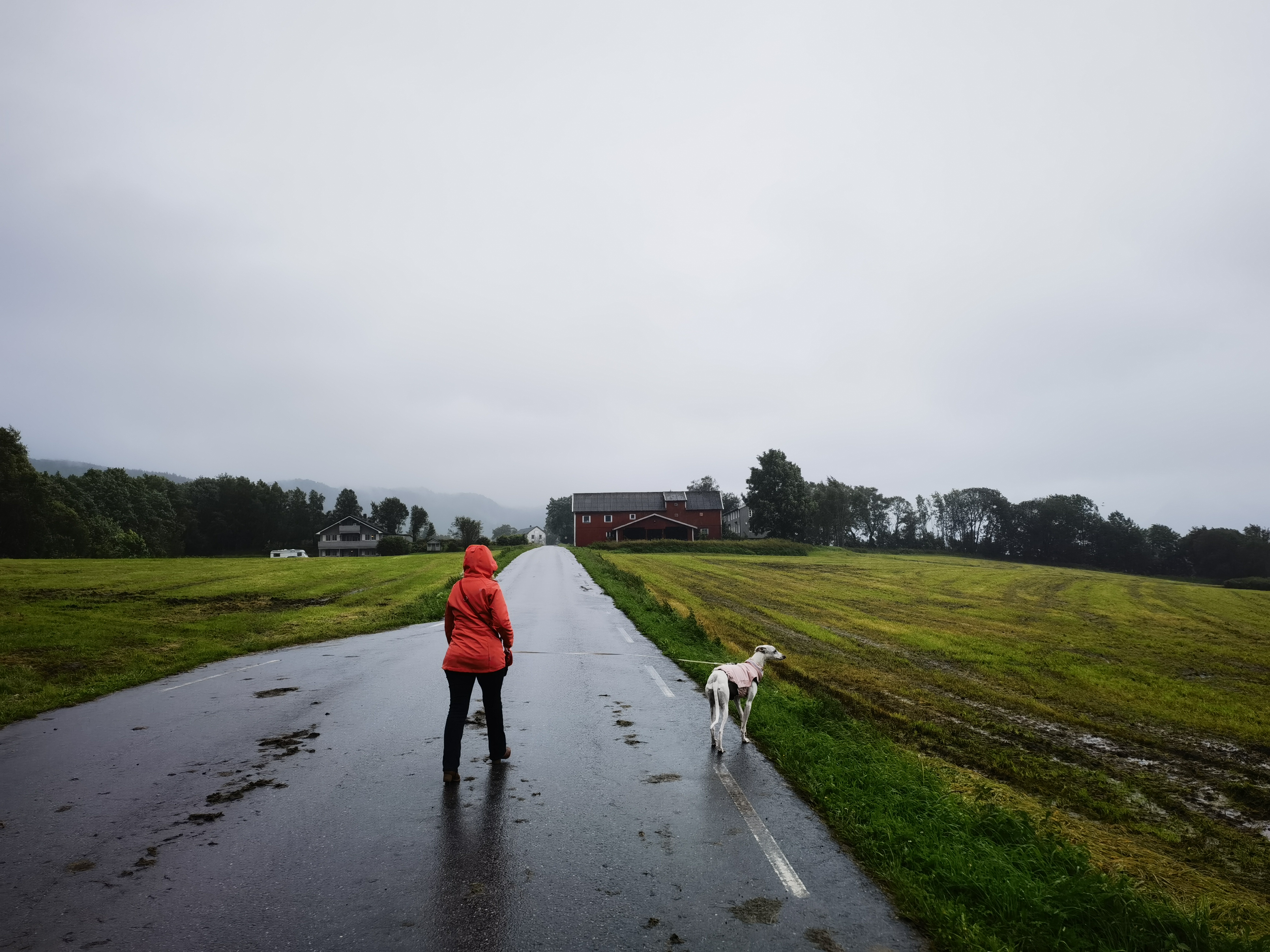 Den heutigen Mittwoch ließen wir ruhig angehen. Wir frühstückten spät und Kathleen nutzte einen kurzen trockenen Moment, um mit Solana eine kleine Runde zu drehen. Immer wieder wechselten sich kurze sonnige Abschnitte mit echt düsteren, dunklen Wolken ab, die dann für lange heftige Schauer sorgten.