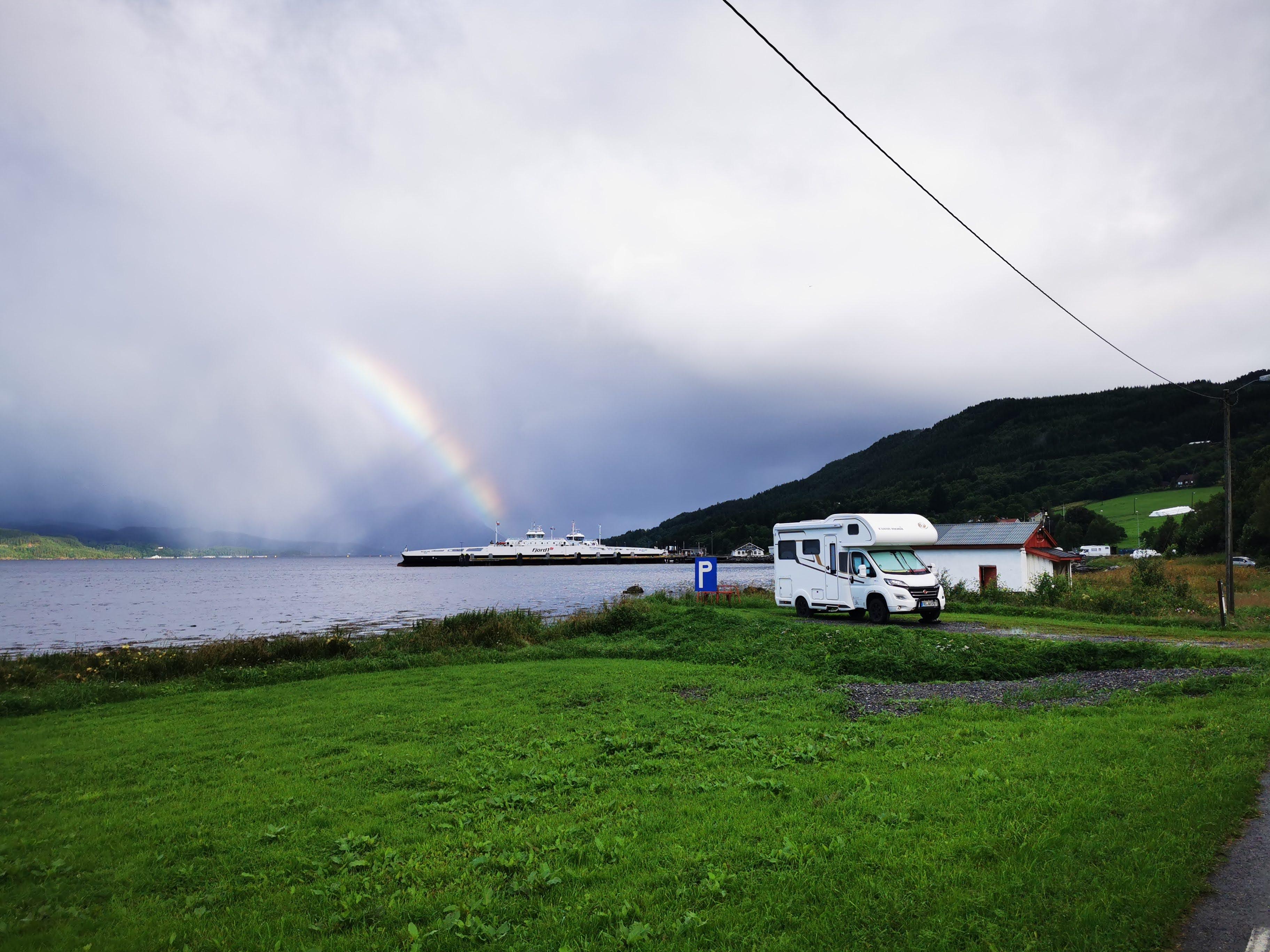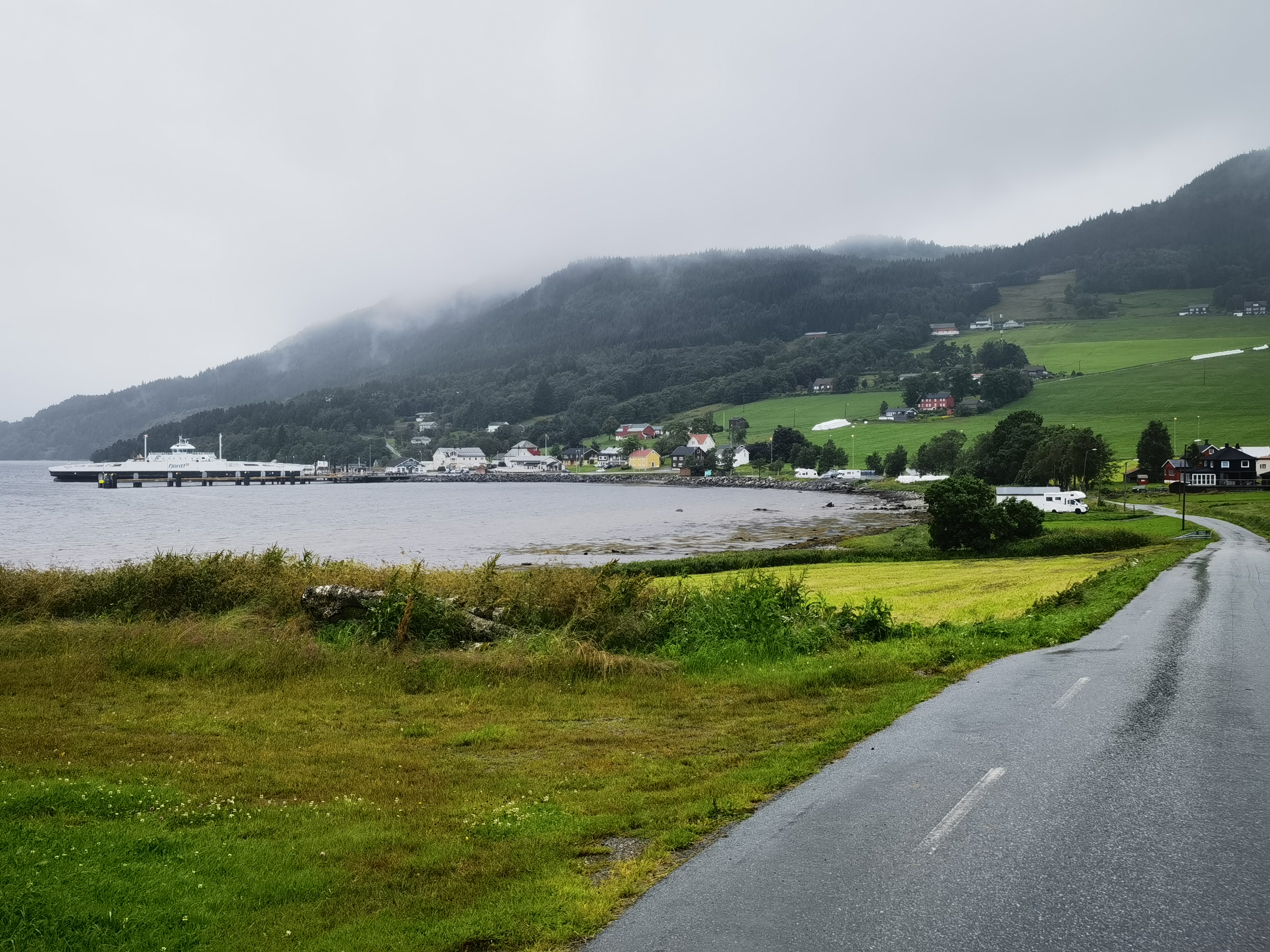 Am Dienstag fuhren wir gegen Mittag weiter in Richtung Süden. Eine Ver-/Entsorgung direkt am Platz in Trondheim wäre möglich gewesen, jedoch war die Anlage natürlich voll – es bildete sich eine lange Schlange. Hinzu kam, dass ich gelesen hatte, dass das „Trinkwasser“ der Anlage merkwürdig riechen soll. Da es hier aber ja bekanntlich an nahezu jeder Ecke eine Station zum „Loswerden“ des Grauwassers und Auffüllen von Trinkwasser gibt, sollte es ja kein Problem werden. Zur Not an irgendeiner der zahlreichen Tankstellen würden wir schon fündig werden. 50 Kilometer und 3 Stationen weiter – an denen es kein Frischwasser gab, kamen wir durch Orkanger. Eigentlich eine unscheinbare Kleinstadt, dessen Hafen ein Teil des Hafens von Trondheim ist. Ein Teil des Containerumschlags wird hier vorgenommen.
