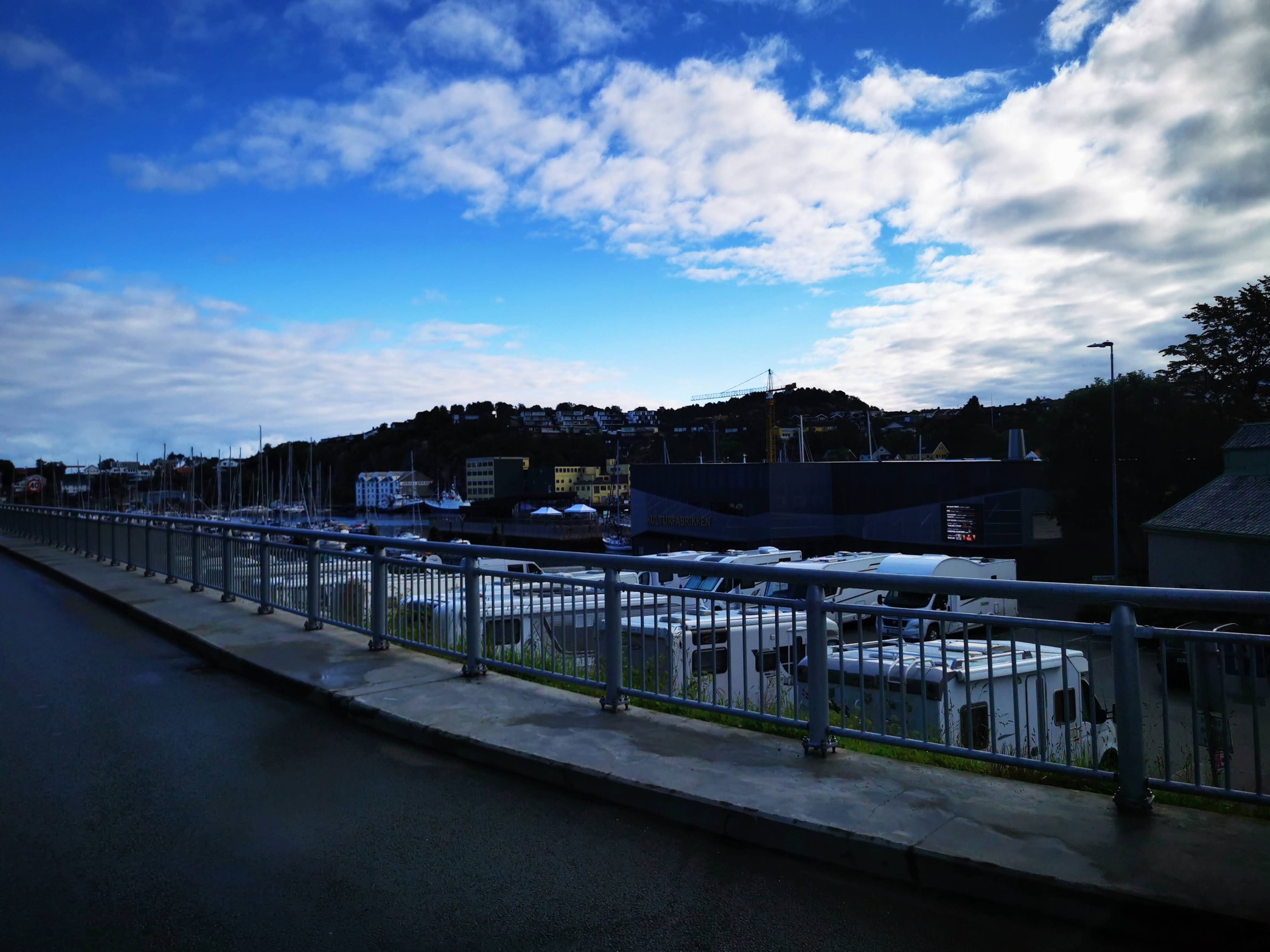 Kristiansund ist wie Helgoland in den Neunzigern, Ein wenig heruntergekommen. Auf mehreren Ebenen – wie mit Ober- und Unterland und total kleinen Straßen. Nur der Ort ist halt wesentlich größer. Wir mussten kleine Straßen mit fiesen Steigungen fahren, um dann festzustellen, dass wir auf der falschen Seite sind, etc…. Irgendwann kamen wir an, parkten an einer „Schräge“ und gingen in die Praxis. Solana wurde untersucht, wir bekamen eine Spritze mit einer Aktivkohlelösung und eine 3 Tages-Magen-Darm-Kur. Falls die Symptome über Nacht schlimmer werden sollten, bekamen wir noch eine Notfall-Nummer mit. Perfekt.