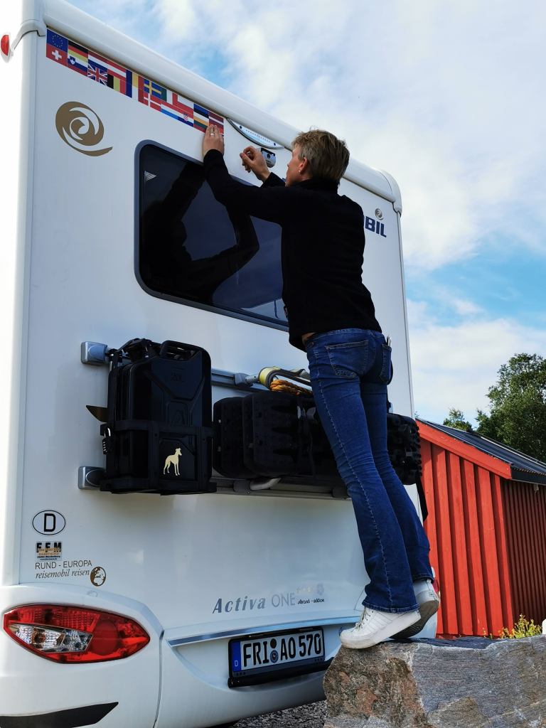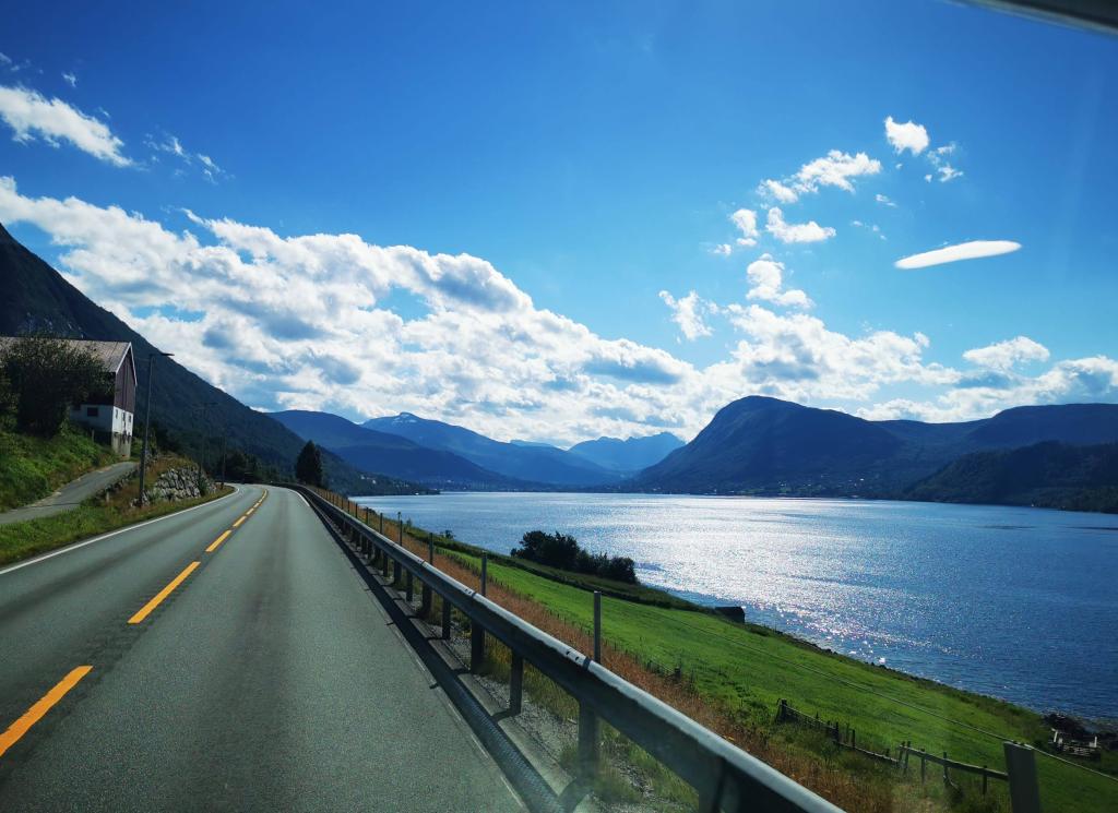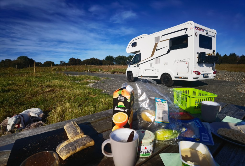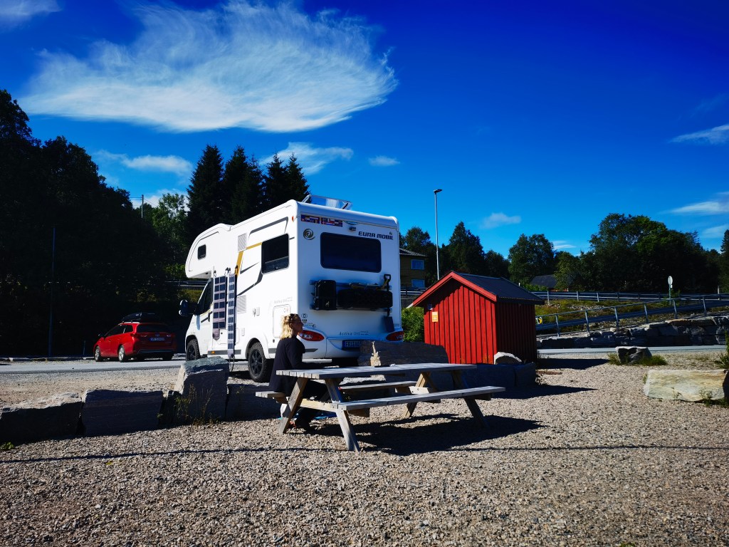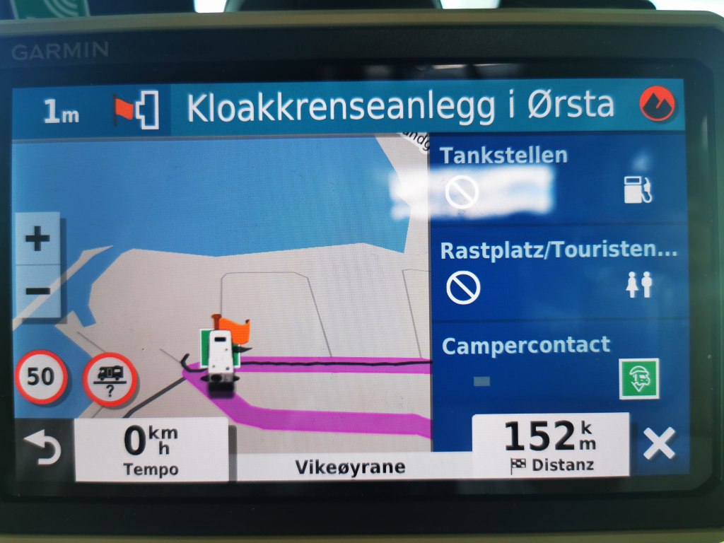 Egal, wir brauchten aber tatsächlich heute für knapp 200 Kilometer ca. 5 Stunden Fahrzeit (man hat eigentlich keine Wartezeit vor den Fähren und wir machten zwischendurch bloß einen Stopp, um unser Grauwasser schnell loszuwerden) und stehen jetzt auf einem „bezahlten“ Stellplatz in einer Marina in Förde…Bezahlter Stellplatz deshalb, weil ich so mit warmen Wasser ausgestattet, unsere Wäsche mal eben auf ein höheres Level bringen kann (Socken und Unterwäsche wasche ich jetzt mit dem Scrubba Bag, Jeans und Handtücher sind tatsächlich in die Waschmaschine der Marina gekommen!) und wir morgen hier direkt ohne Suchen, Grauwasser entsorgen und Frischwasser tanken können, bevor wir uns dann danach in Richtung Bergen aufmachen.