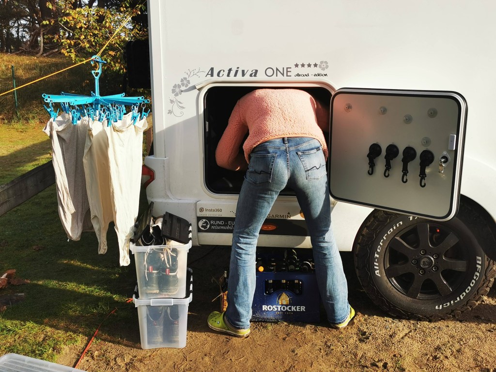 Nach der morgendlichen Foto-/Videosession genossen wir ein entspanntes Frühstück in unserem rollenden Appartement und nutzten die Zeit bis zum Nachmittag, um es ein wenig aufzuräumen, bzw. wir widmeten uns dem Versuch, dem Sand „Herr“ zu werden – eine aussichtslose Unternehmung… Wir holten und fegten den feinen Sand aus jeder noch so kleinen Ecke im Reisemobil…