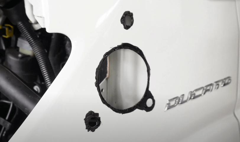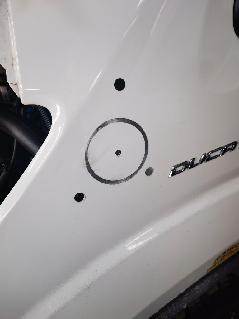 Der Einbau war relativ schnell gemacht – ca. 1.5 Stunden sollte man dafür einplanen (mit Ablüften der Rostschutzfarbe dementsprechend länger). Bei mir hat das alles länger gedauert, da meine erste Lochsäge von der Qualität her nicht reichte, um die von mir eher als „Trompetenblech“ eingestufte Außenhülle des Ducatos zu durchdringen.