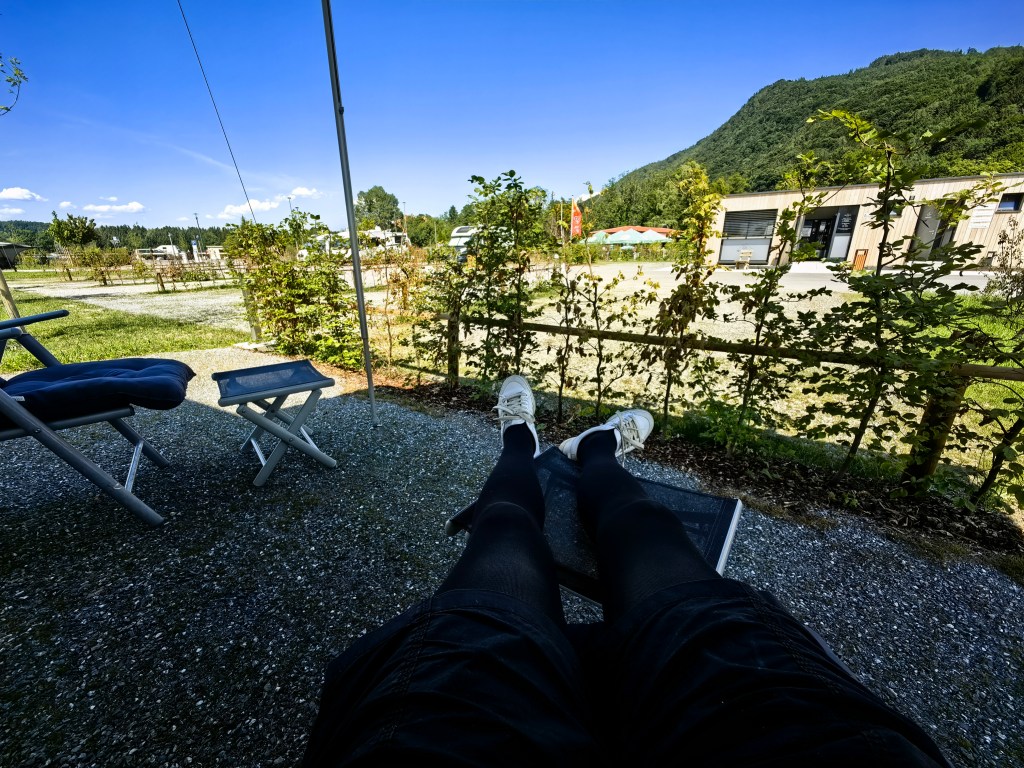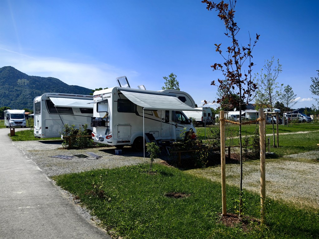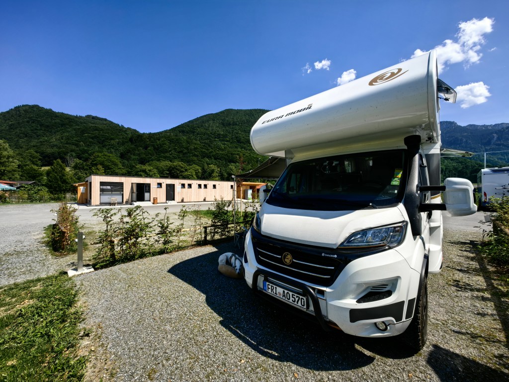 Also fuhren wir den Platz in Aschau im Chiemgau an und waren überrascht….Wir checkten am Automaten ein und wurden von der Realität eingeholt. Ohne Strom und ohne aufgebuchte Zusatzleistungen zahlte ich für die eine Übernachtung auf einem Schotterplatz 32€ in den Automaten…. Es sind ja Ferien!