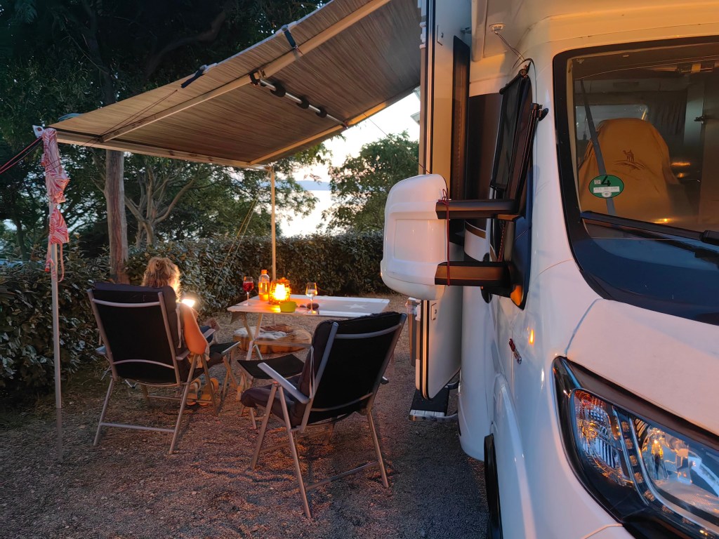 Wir waren und sind immer noch von unserer Parzelle begeistert (comfort zona F). Wir haben ein wenig Meerblick (von der Rundsitzgruppe im Heck ohne Probleme), ein wenig Schatten, Strom und Wasser am Platz und auch angemessenen Abstand zur einzigen Nachbarparzelle! Auf der anderen Seite ist ein Abhang, da der Platz terassiert angelegt ist.