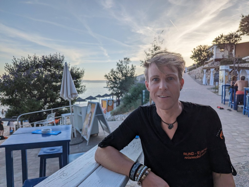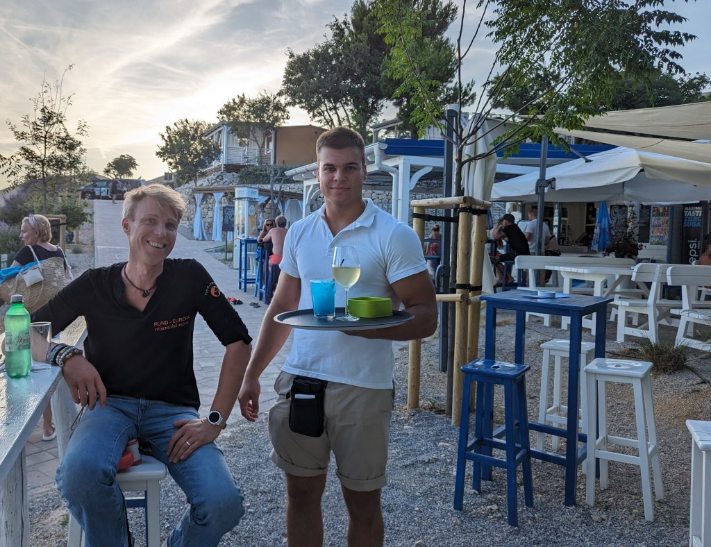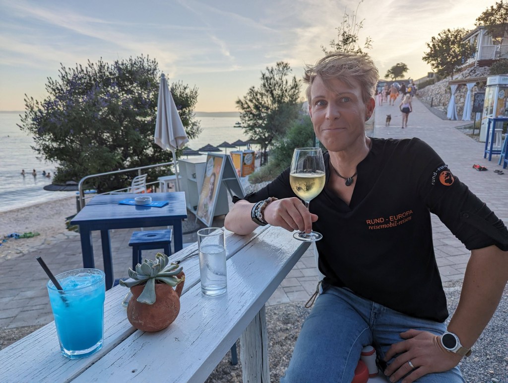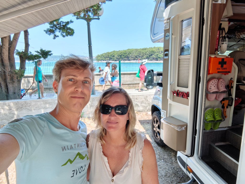 Nach dem Checkout fuhren wir am nächsten Morgen schnell noch einen Supermarkt an, versorgten uns mit ein paar Lebensmitteln und bewegten das Mobil noch die 10 Kilometer weiter auf die Südseite der Insel zum Camping Skrilla. Der Weg dahin war schmal, steil und beschwerlich. Eigentlich alles kein Problem, wenn nicht an den Straßenrändern an den unübersichtlichsten Stelen Autos geparkt hätten, denn kurz vorm Campingplatz liegt die viel gefeierte „Oprna beach“.