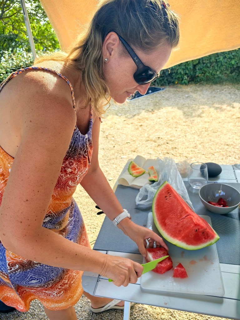 Auf dem Stellplatz angekommen, war es so dermaßen heiß, dass wir das erste Mal über den weiteren Verlauf der Reise nachdachten, bzw. erst jetzt so richtig realisierten, das es in den nächsten Wochen (nicht nur) in Süd-Europa zum Hitzekollaps kommen wird…