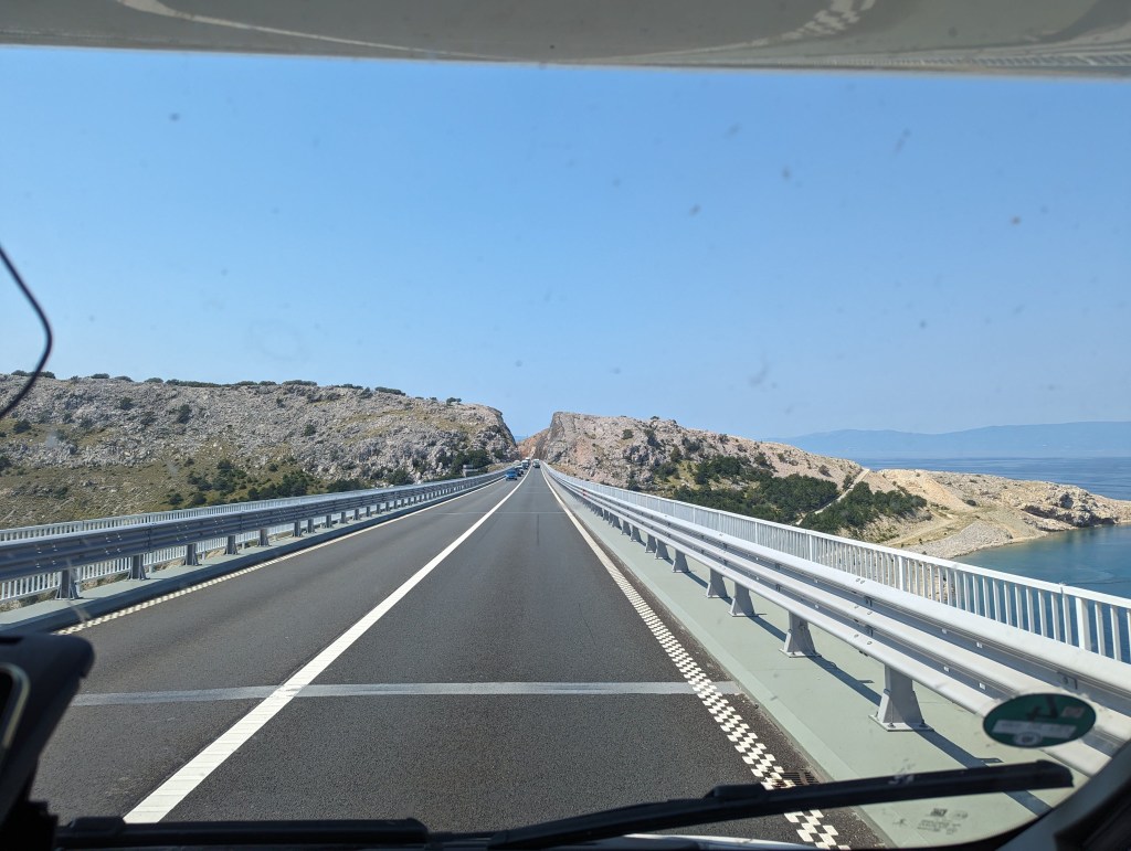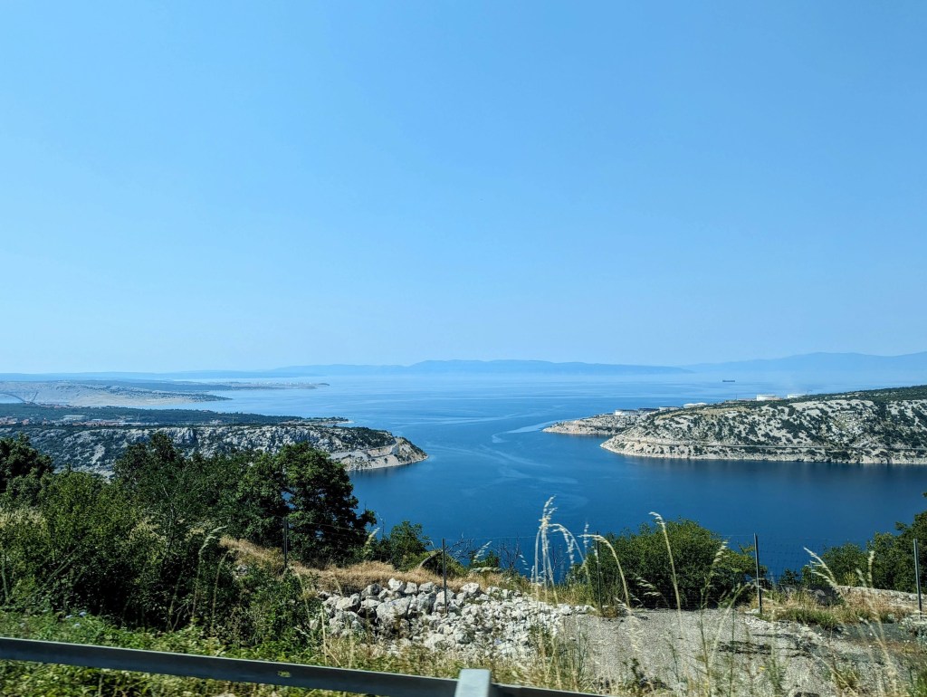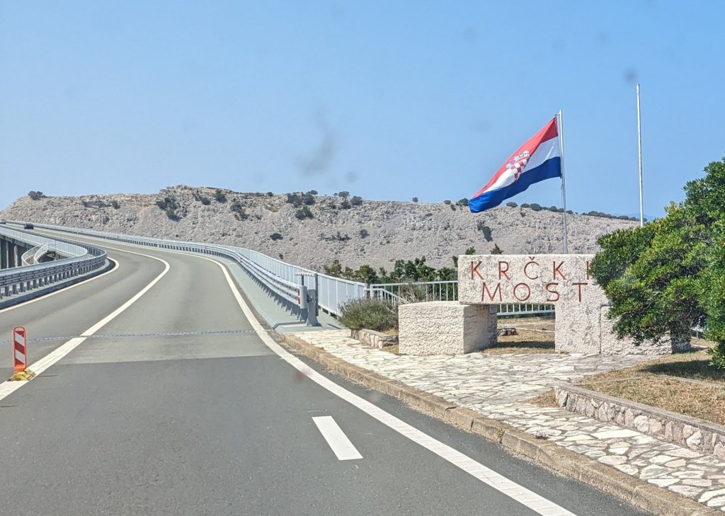 Am nächsten Morgen führen wir in Richtung Kroation. Das letzte Stück in Slowenien lief nicht so richtig komfortabel – meint man doch, sich auf einer Hoch-Harz-Nebenstraße kurz nach der Wende, zu bewegen. Als wir die Grenze übertraten (auch hier wieder keinerlei Kontrollen, oder auch nur ansatzweise Anzeichen einer bemannten Grenzstation), wandelte sich die Straße zu einer gut ausgebauten neuen Autobahn und so rollten wir die letzten Kilometer vorbei an den Abzweigungen nach Opatija und Rijeka und fuhren wirklich schnell auf die Insel KrK.