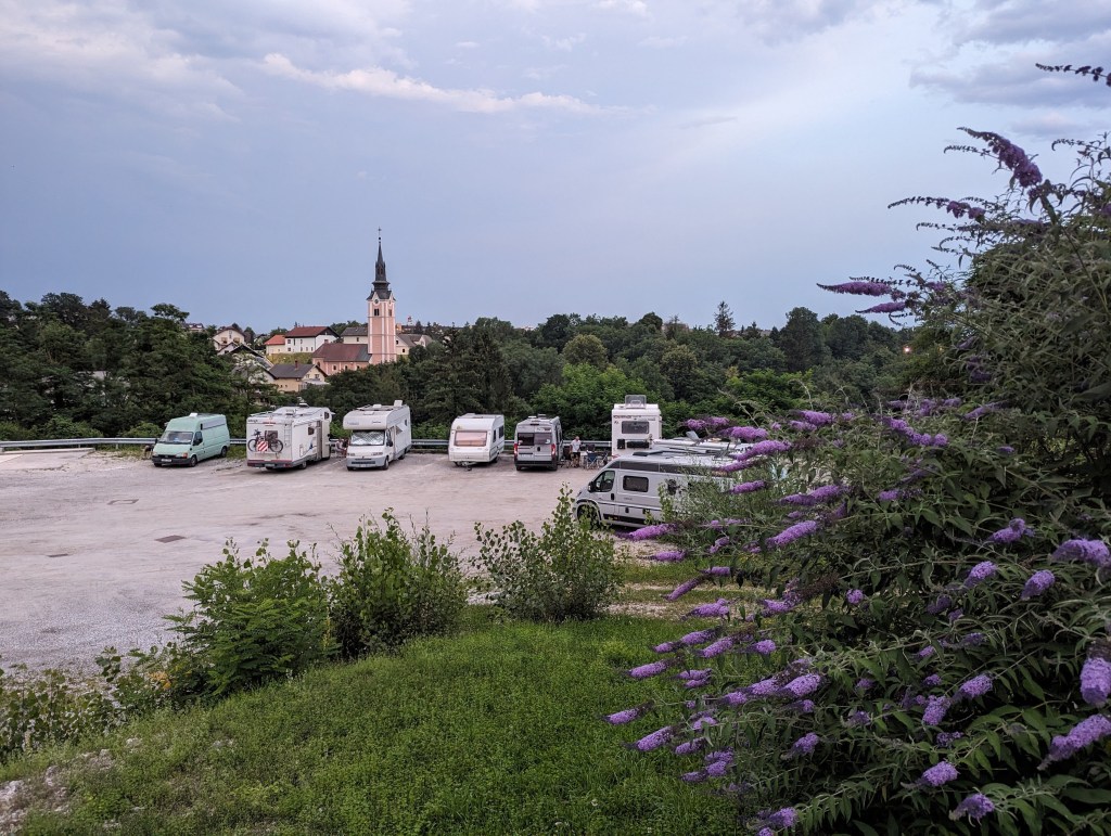 Der Stellplatz in Kranj kostete wirklich „nur“ 13€, lag direkt am Rand der City und man hätte sogar Strom nehmen können. Brauch(t)en wir aber ja nicht…