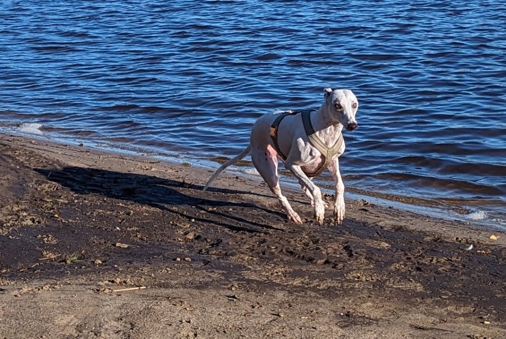 Selbstverständlich stand am Ende der erneute Besuch am Hundestrand auf dem Programm, aber Solana hatte irgendwie keinen richtigen „drive“, vermutlich war ihr der Wind zu kalt…(uns auf jeden Fall)