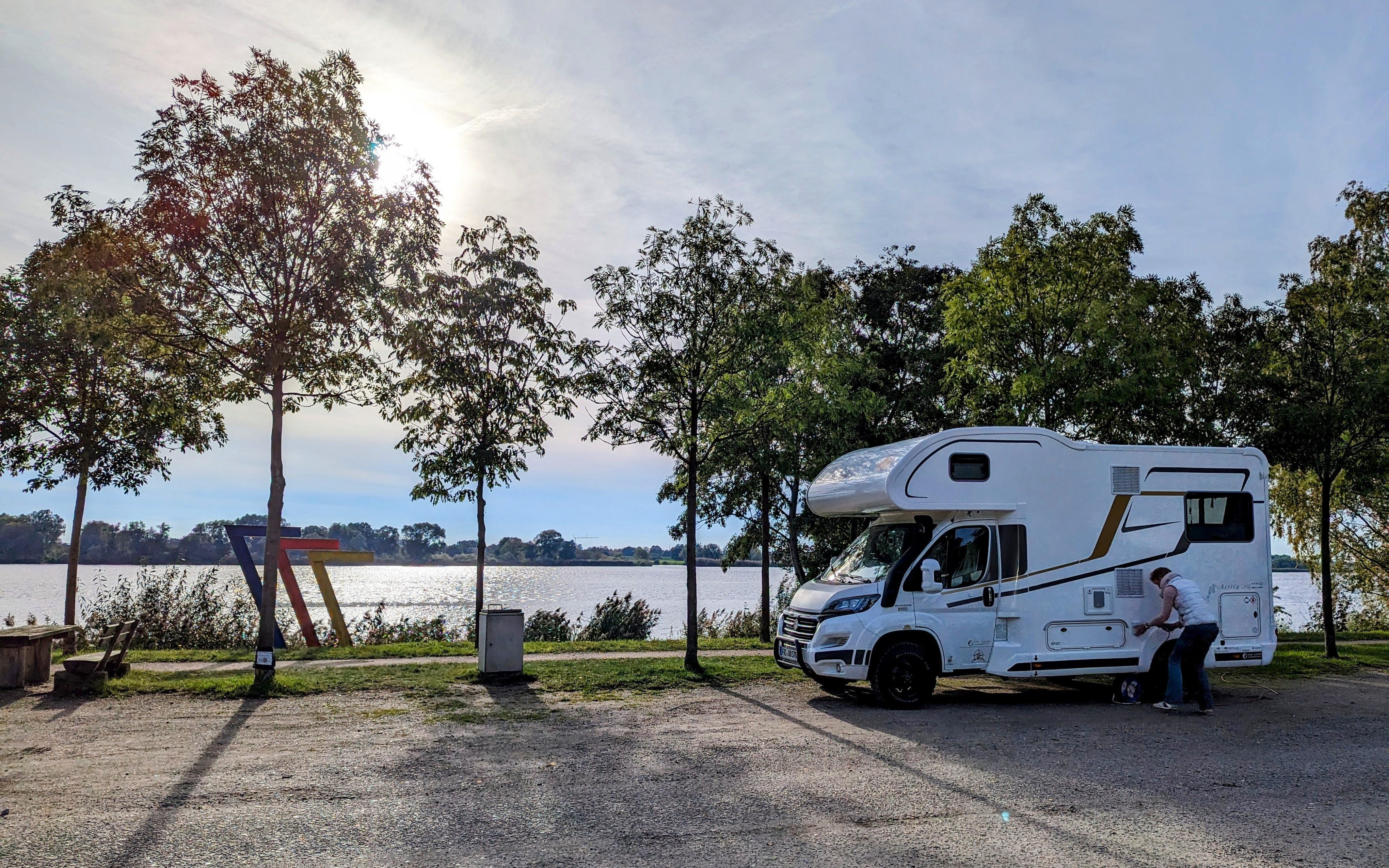 Leider kann man hier in der Umgebung nur sehr eingeschränkt übernachten, bzw. wir sind zu „angepasst“ und akzeptieren einfache Regeln, wie z.B. „keine Übernachtungen in Naturschutzgebieten“. Die offiziellen Stellplätze rund um Hamburg sagten uns nicht zu, so dass wir uns kurzerhand dazu entschlossen, nach Geesthacht zu fahren. Hier gibt es einen kleinen Stellplatz direkt an der Elbe, den wir über Weihnachten 2016 schon einmal angefahren haben.