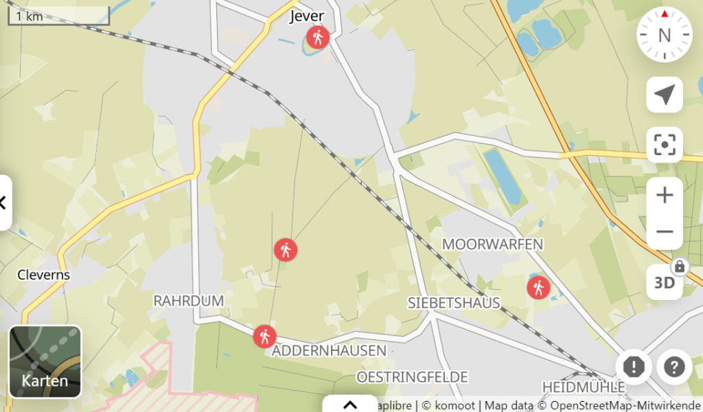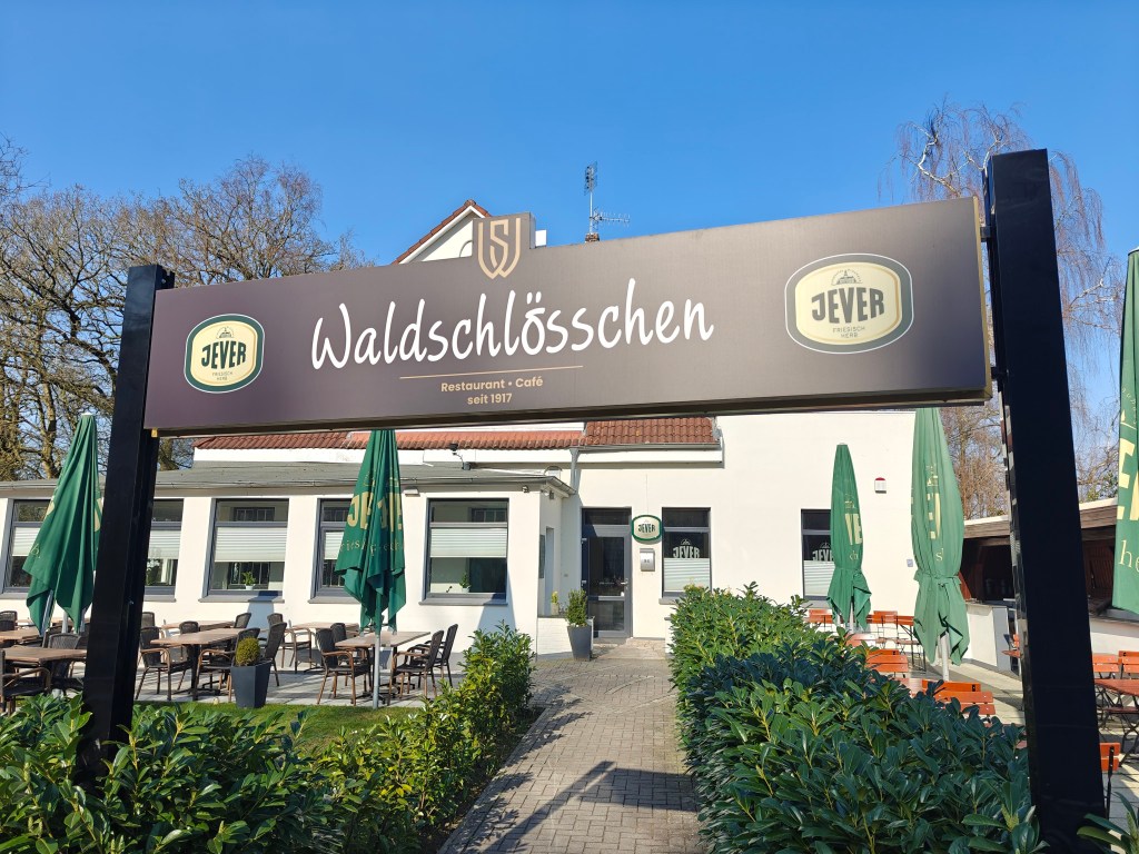 Unser Ziel: das Waldschlösschen zwischen Schortens und Jever. Schon seit einiger Zeit wollten wir das Restaurant „testen“ – bietet es doch einen kostenlosen Stellplatz für Gäste mit Wohnmobil und liegt als Startpunkt für Spaziergänge ideal.