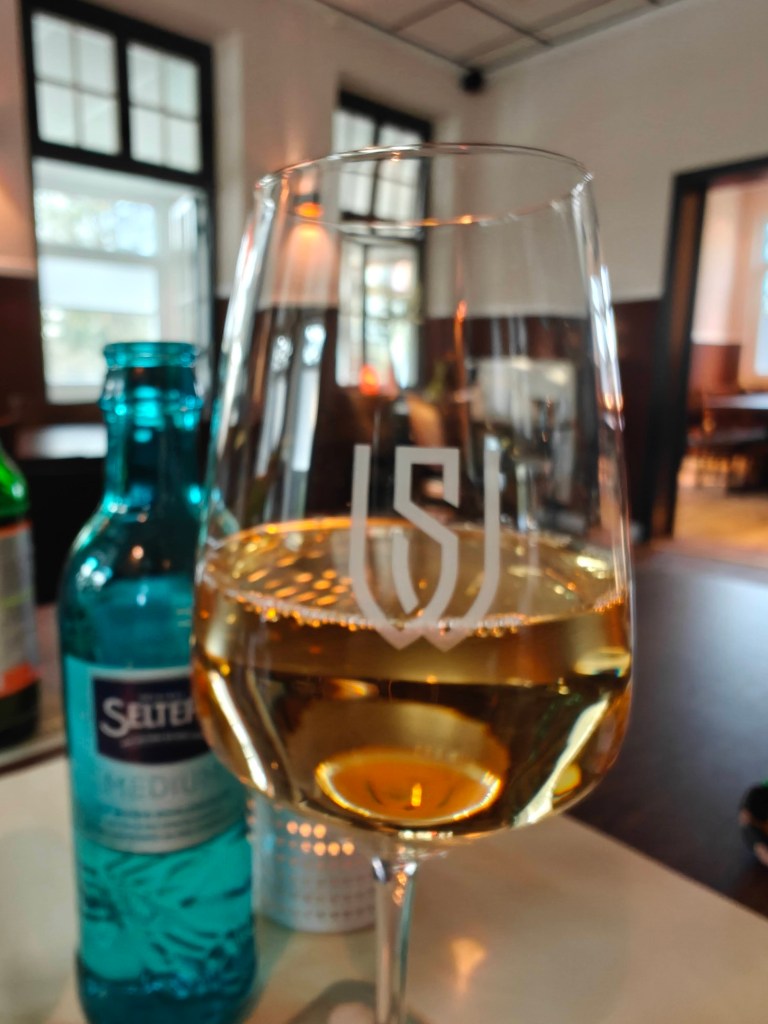 Auch den „Waldschlösschen Grauburgunder“ – serviert im hauseigenen Editionsglas kann ich empfehlen 😉