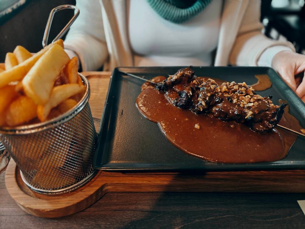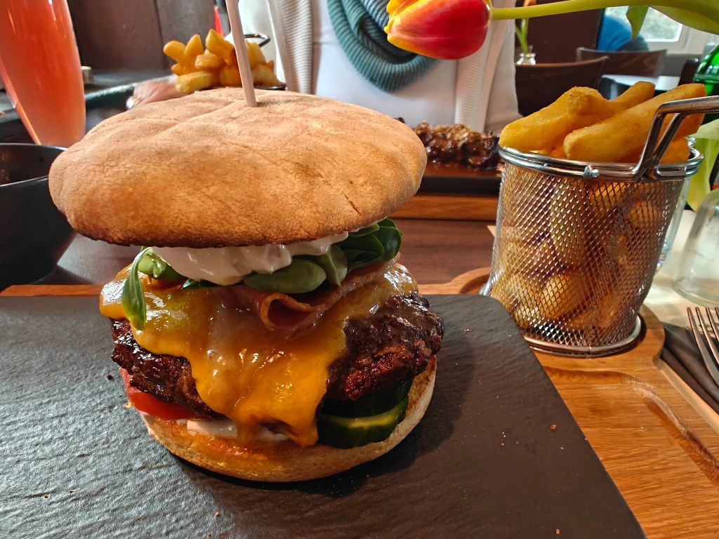 Die Speisekarte bot eine kleine – aber feine – Auswahl an unterschiedlichsten Gerichten, die frisch und mit Liebe zum Detail zubereitet wurden. Wir entschieden uns für das „Holländische Saté“ und den „Waldschlösschen Burger“.