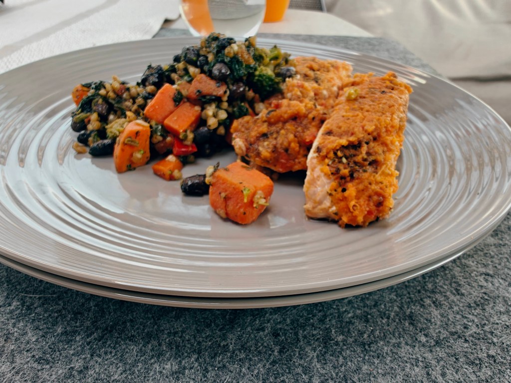Am Nachmittag kehrten wir ein wenig müde, aber glücklich zum Wohnmobil zurück und ich bereitete uns ein leckeres Abendessen mit Ofenlachs an Quinoa-Gemüse zu. Relativ früh verschwanden wir im Alkoven.